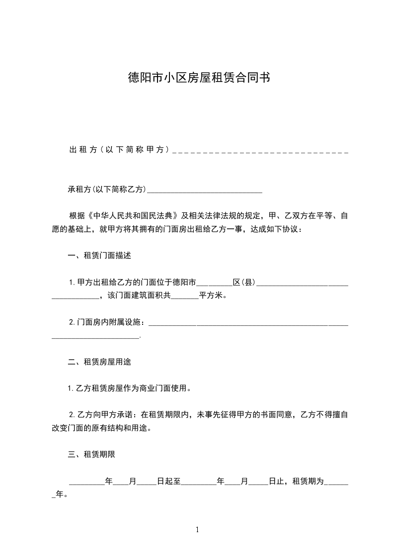 1.甲方出租给乙方的门面位于德阳市_________区(县)___________________________________,该门面建筑面积共_______平方米。