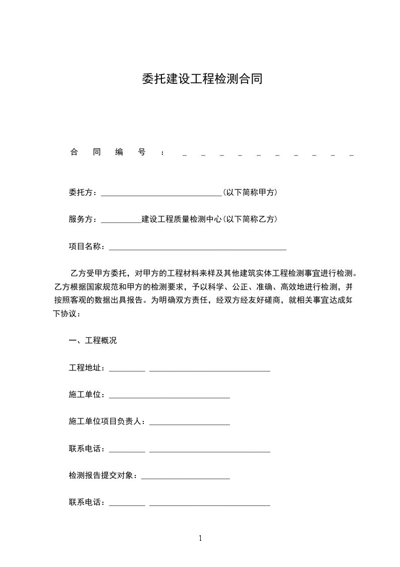 1、工程开工后,凡建设过程发生的相关检测均委托乙方进行。
