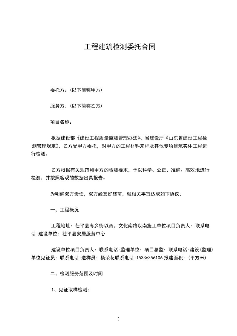 根据建设部《建设工程质量监测管理办法》、省建设厅《山东省建设工程检测管理规定》,乙方受甲方委托,对甲方的工程材料来样及其他专项建筑实体工程进行检测。