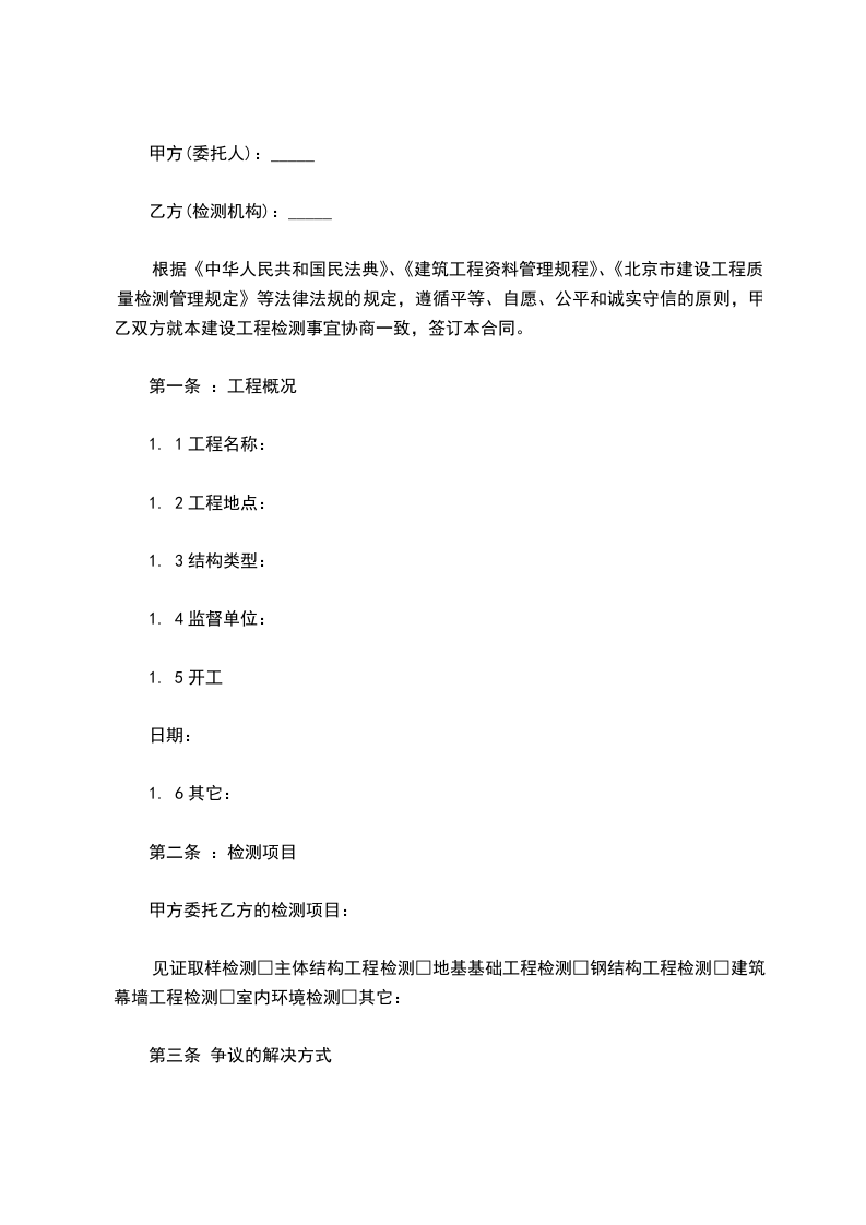 2、甲方未明确检测标准,按工程施工验收规定的标准执行。