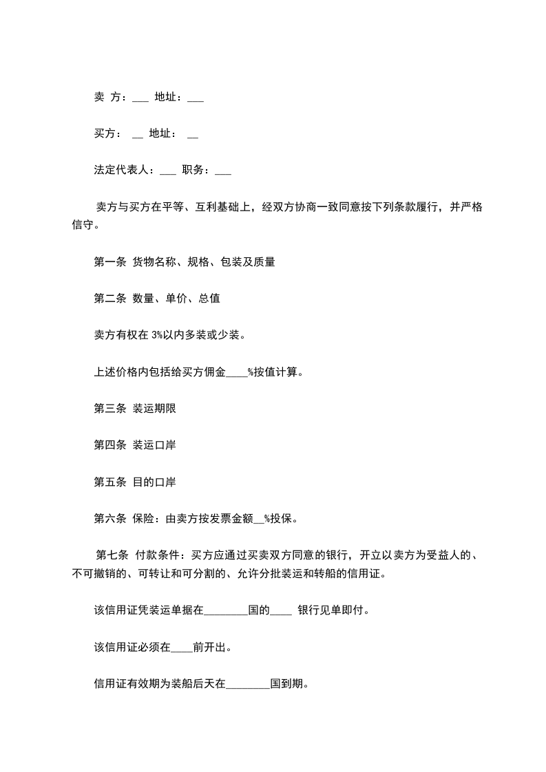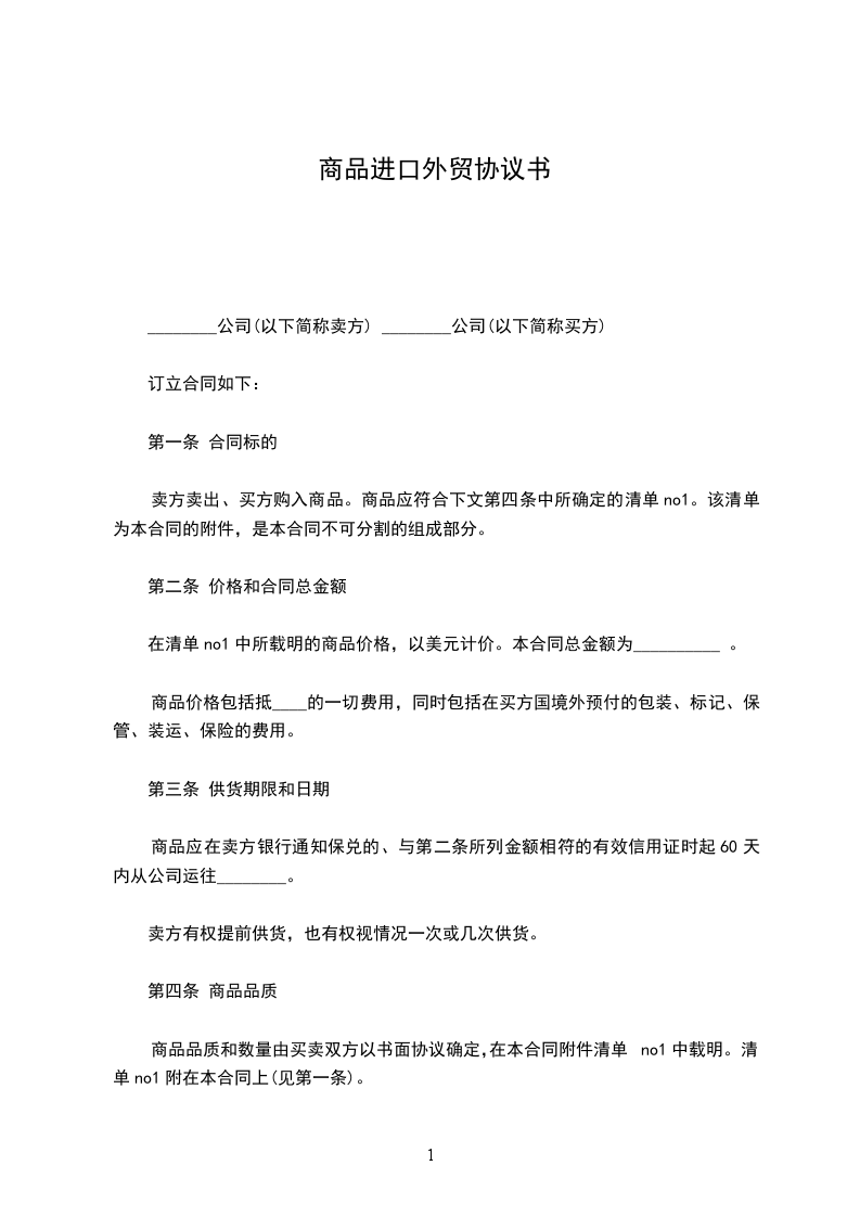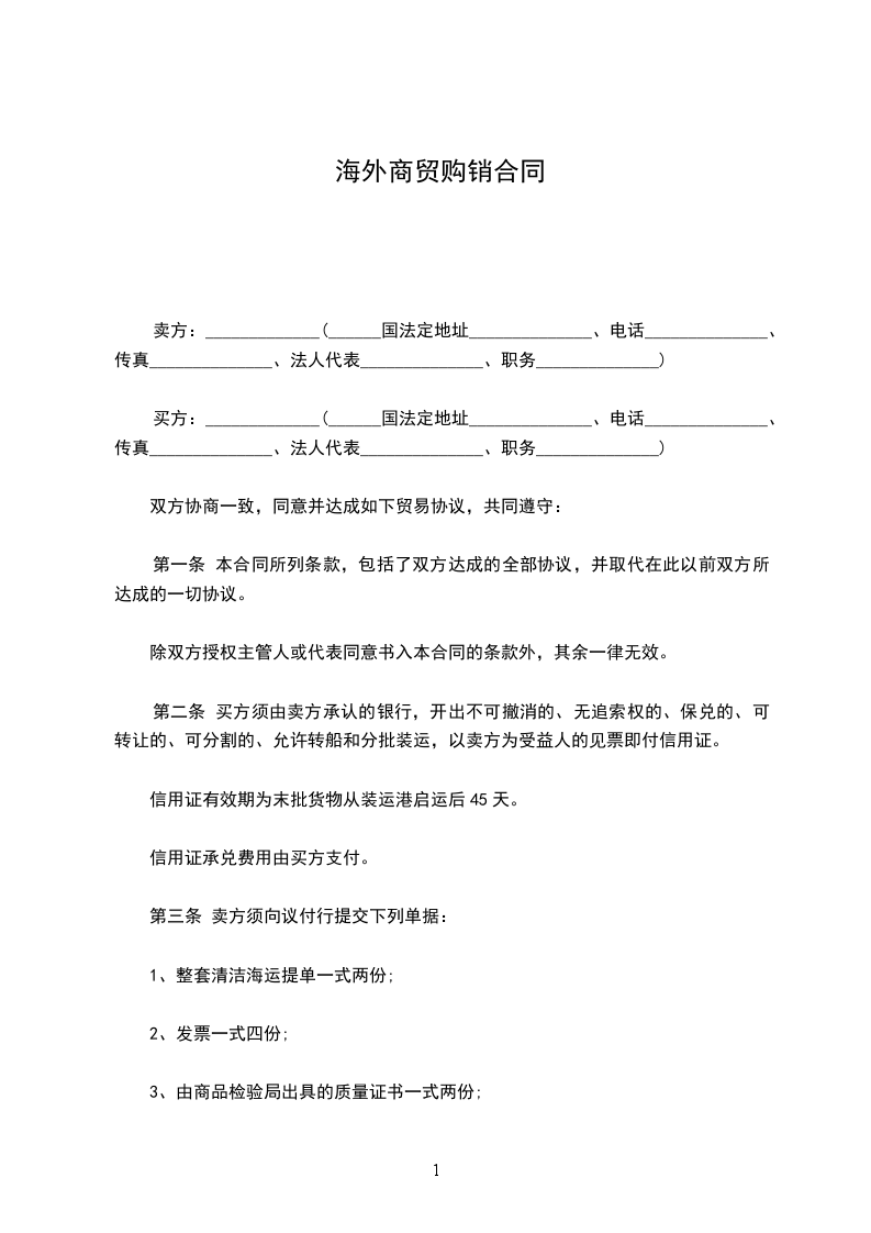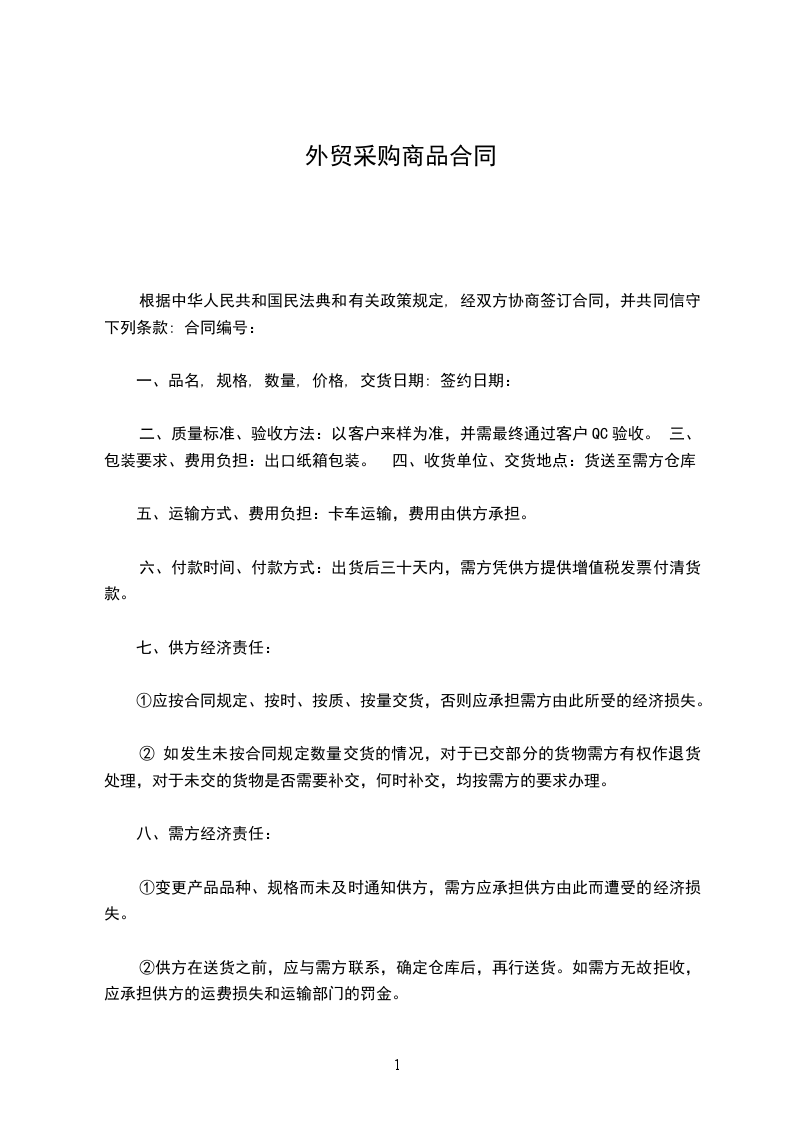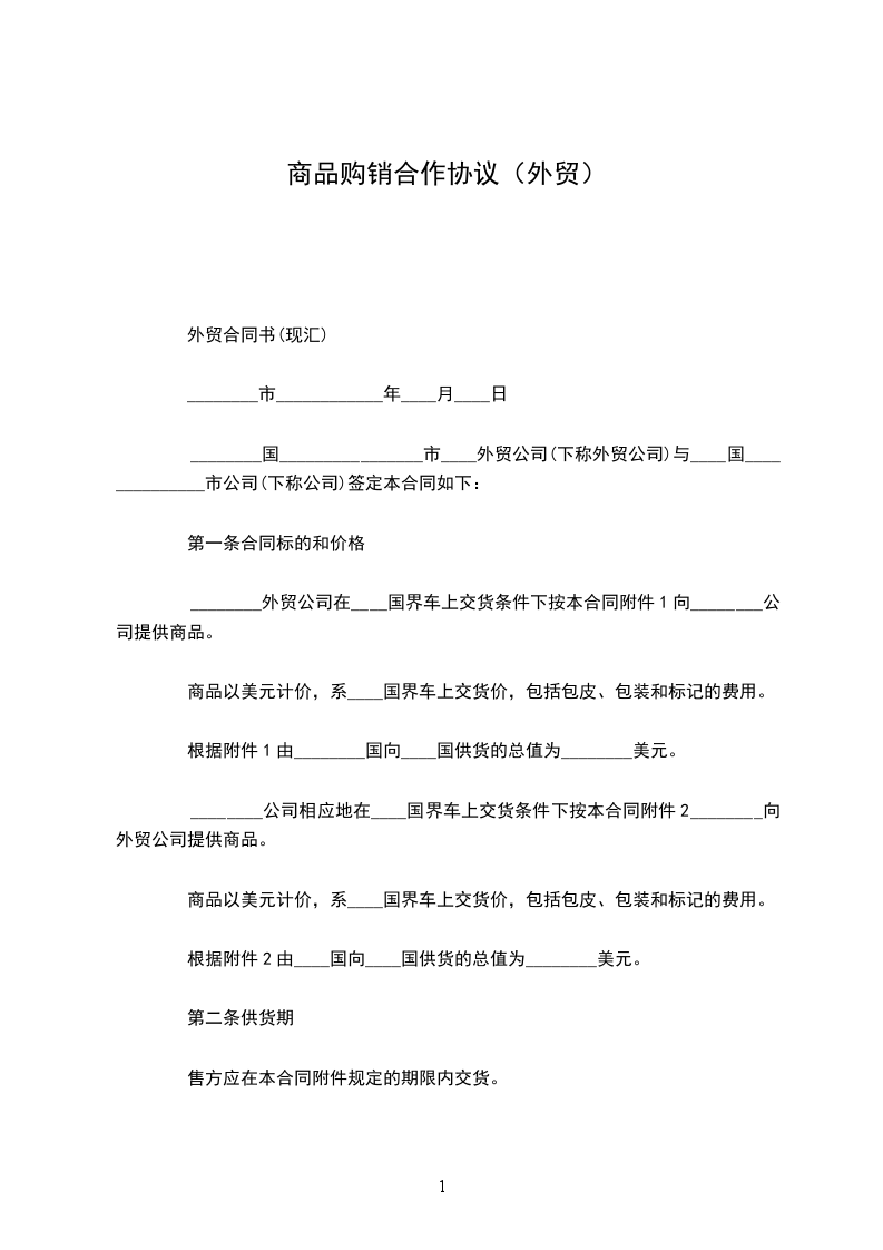 ________外贸公司在____国界车上交货条件下按本合同附件1向________公司提供商品。