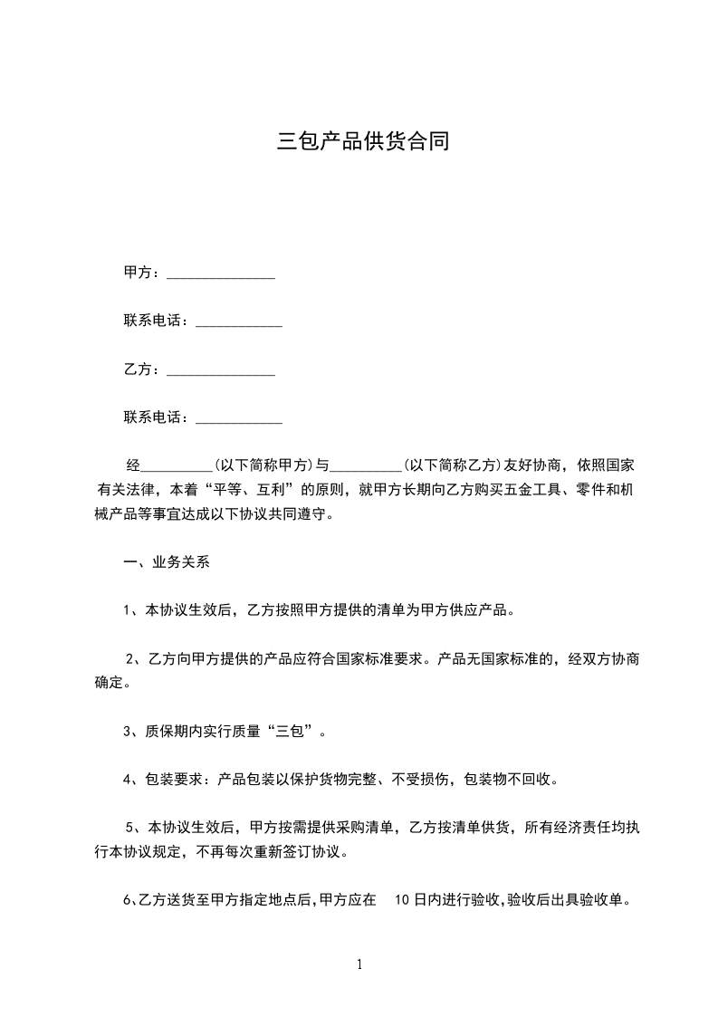 6.乙方对原装、原封、原标记完好无异状的产品质量负责三包,三包期限为年。