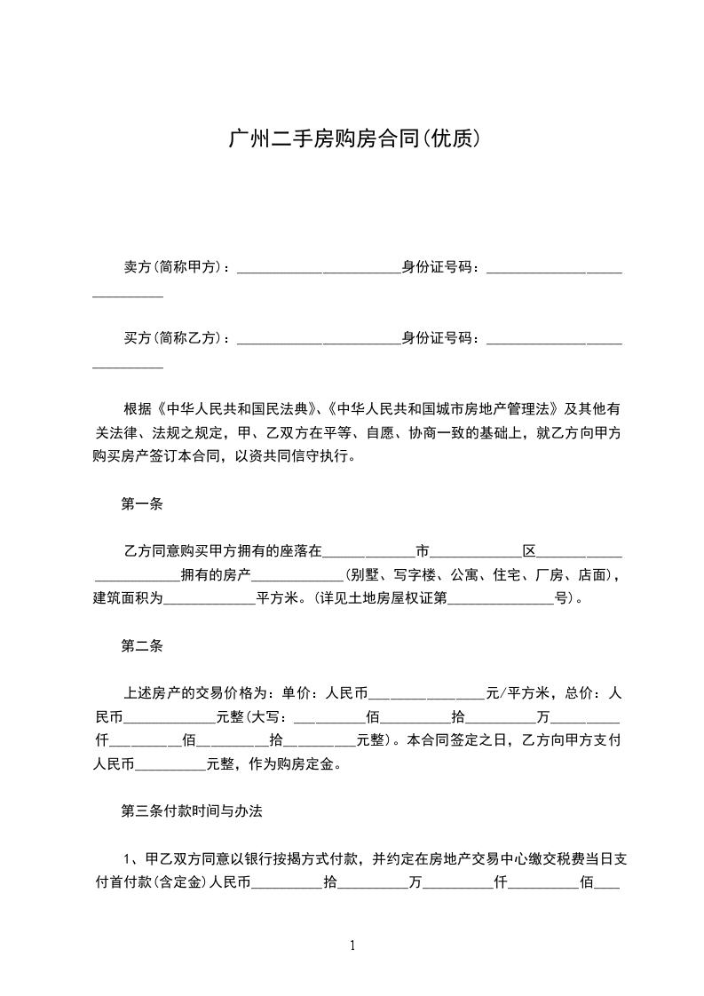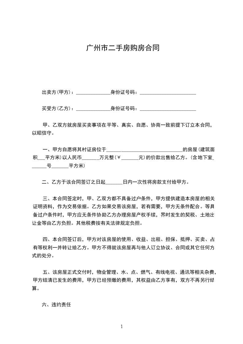 1. 甲方所售房屋位于广州市[具体区域][小区名称][栋号][单元][房号],建筑面积为______平方米,房屋用途为______。