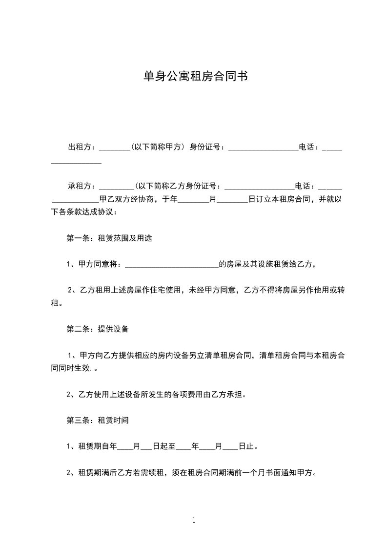 1、甲方向乙方提供相应的房内设备另立清单租房合同,清单租房合同与本租房合同同时生效.。