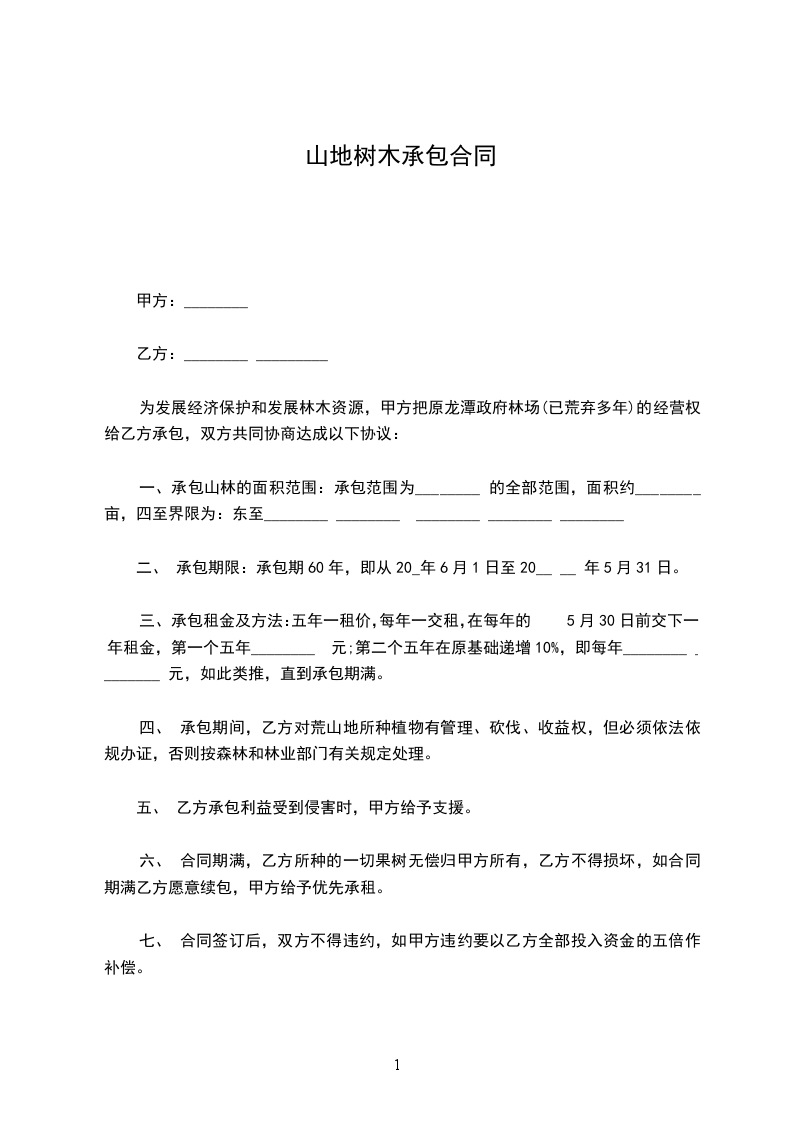 二、承包期限自________年________月________日起至________年________月________日止,共______年。