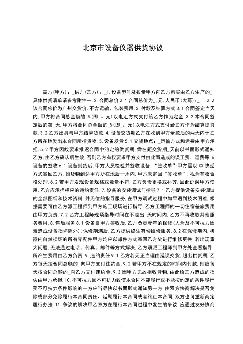 货物如发现设备故障应按保修条例执行(包换、包修),如乙方不履行合同给甲方照成损失,乙方应按照合同金额的_______%,以天计算支付违约金。
