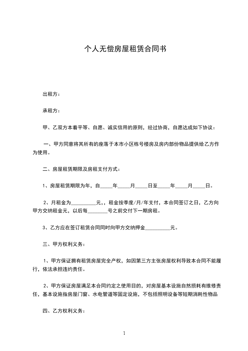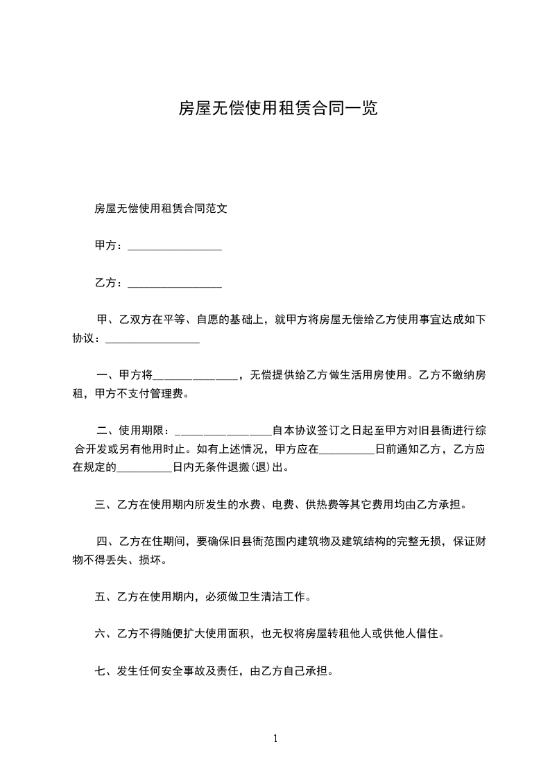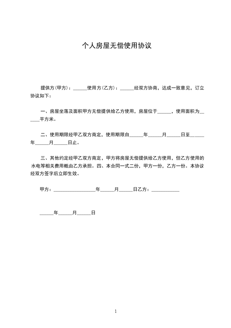 甲乙双方通过友好协商,就房屋无偿使用事宜达成如下协议: