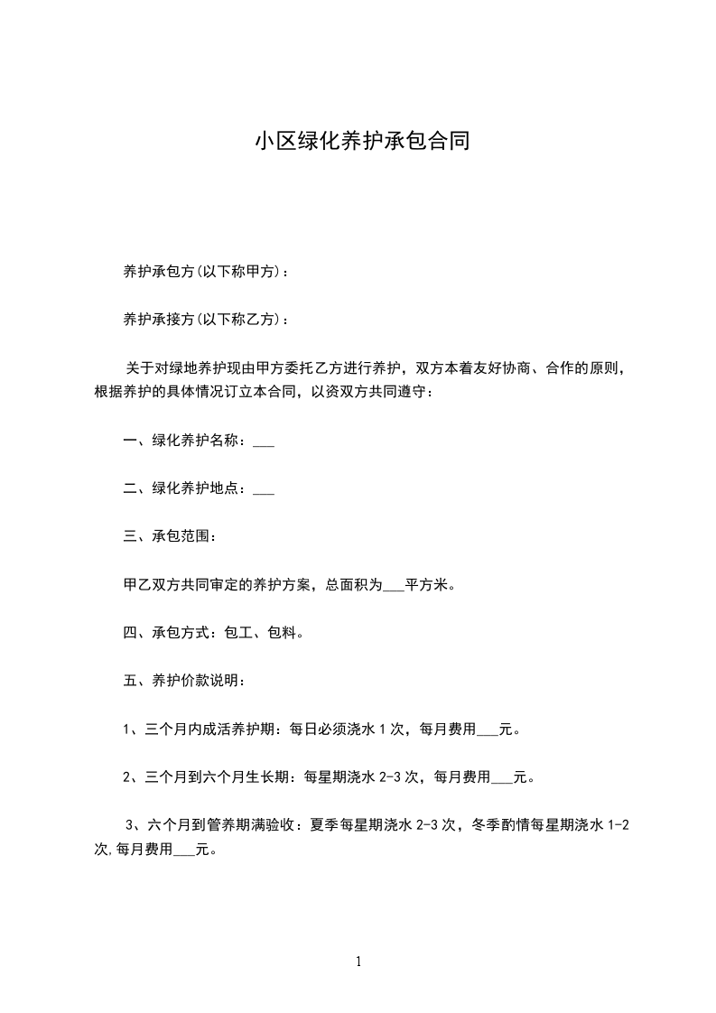 4、本合同一式4份,均具同等效力,双方签字盖章后即生效,合同期满自行失效。个人绿化养护承包合同协议范本2甲方:乙方:经甲乙双方协商,甲方将乙方养护,为明确双方责任,本着相互协作,达成如下协议: