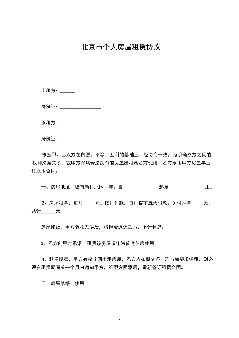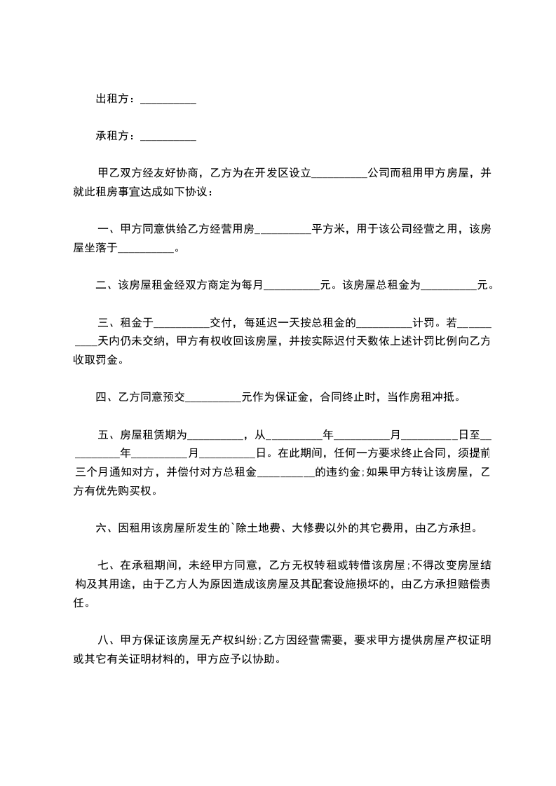 承租房:_________________,以下简称乙方