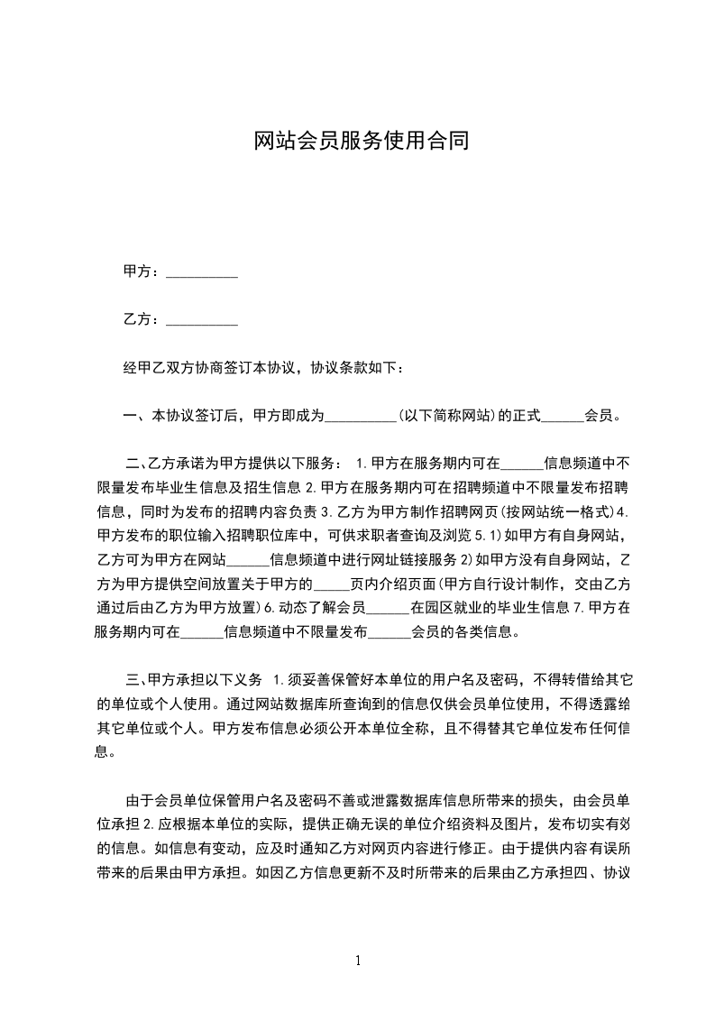 一、本协议签订后,甲方即成为__________(以下简称网站)的正式______会员。