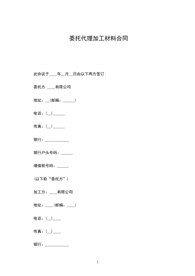 (7)委托方必须最迟在加工方开工前五天向加工方提供订单所需的原材料及包装材料。