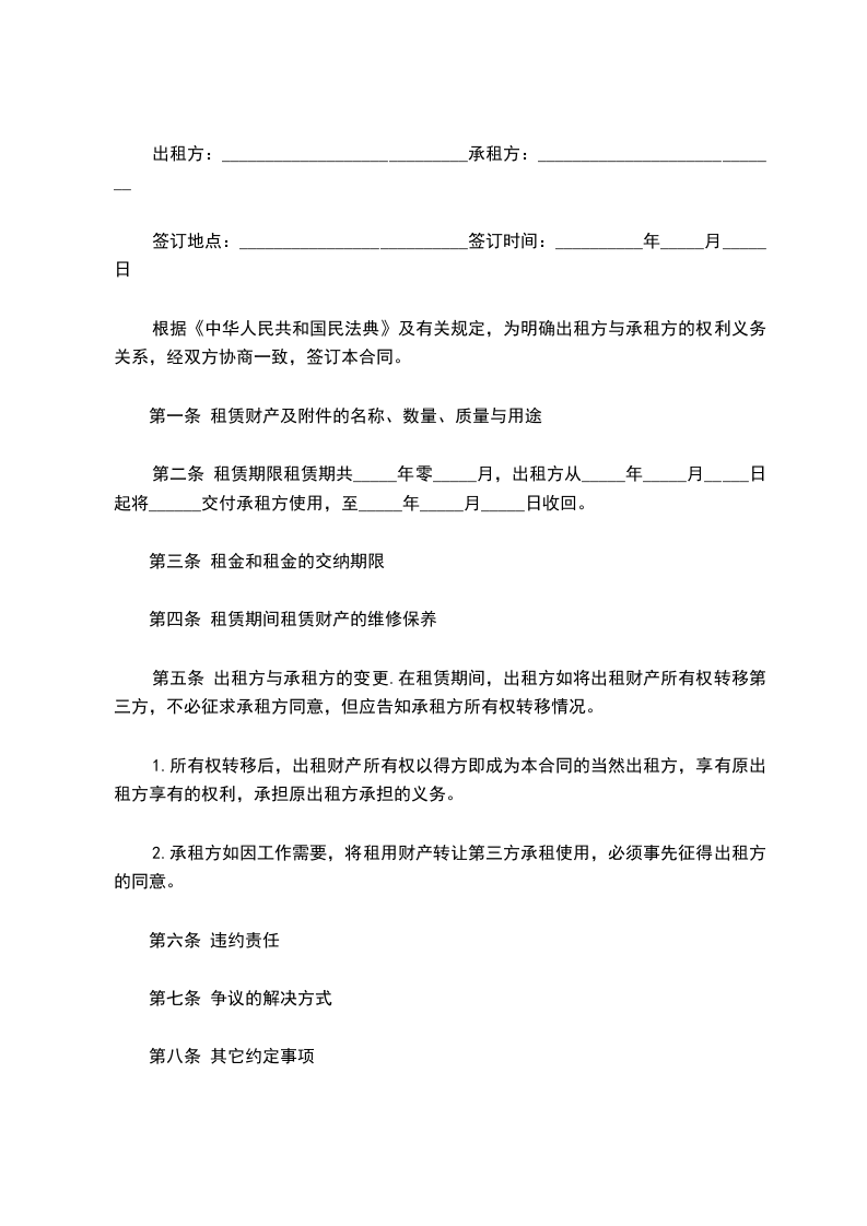 2.承租方如因工作上的需要,将__(租赁财产)转让给第三方承担使用,必须事先征得出租方的同意。