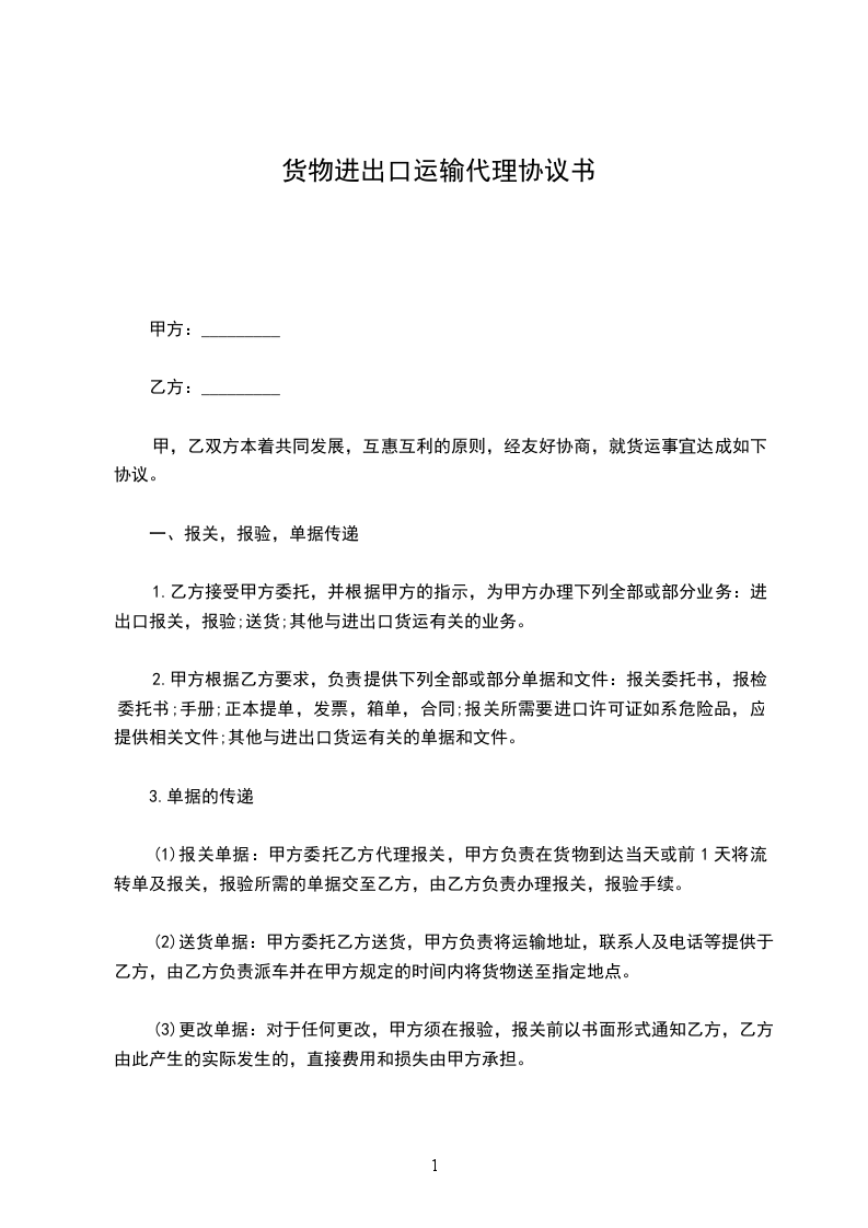 _________(以下简称甲方)与_________(以下简称乙方)就海运进口货物的清关及运输事宜,经双方友好协商,达成协议如下:
