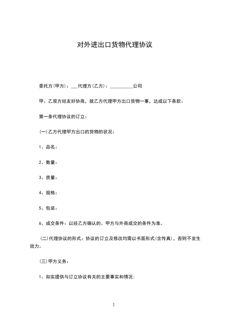 代理协议范文