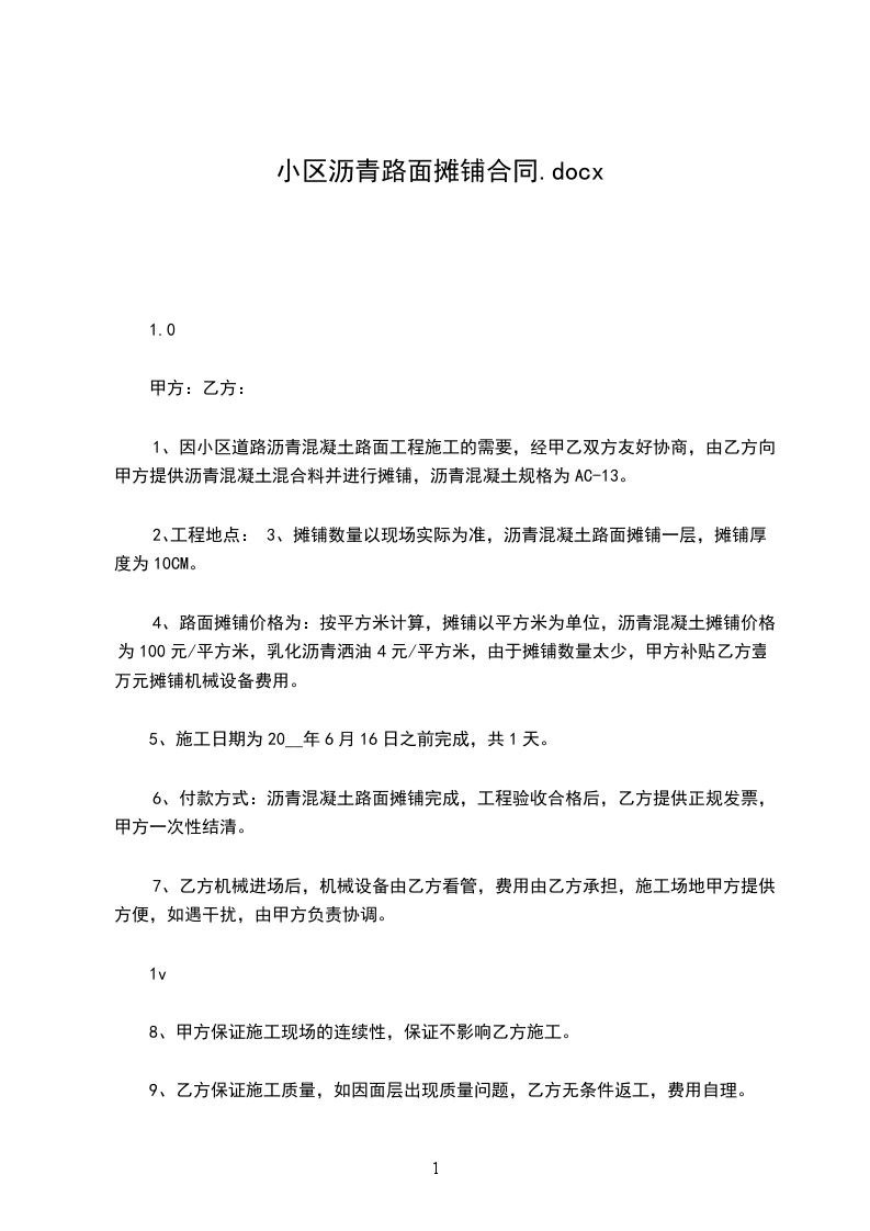 2. 质量要求:乙方应按照国家及行业现行的相关标准、规范以及甲方的要求进行作业,确保摊铺的沥青路面符合[具体质量标准,如平整度、压实度等要求]。