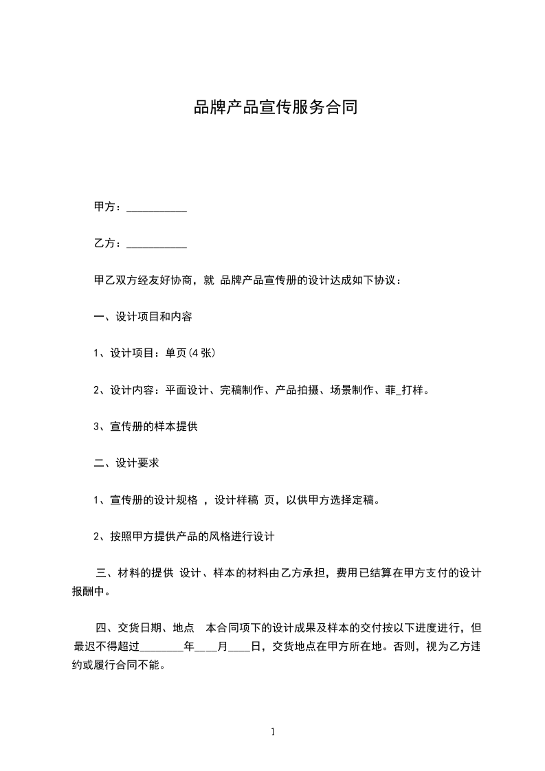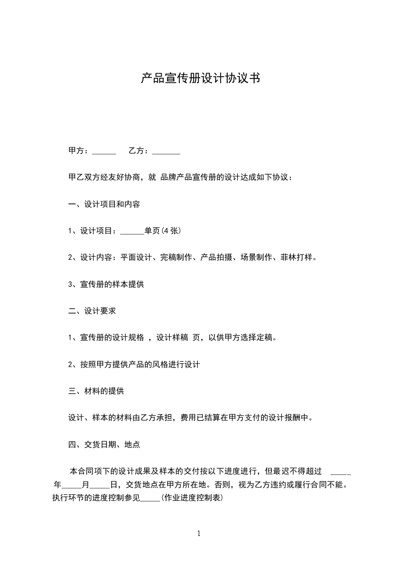 双方经友好协商,就品牌产品宣传册的设计达成如下协议: