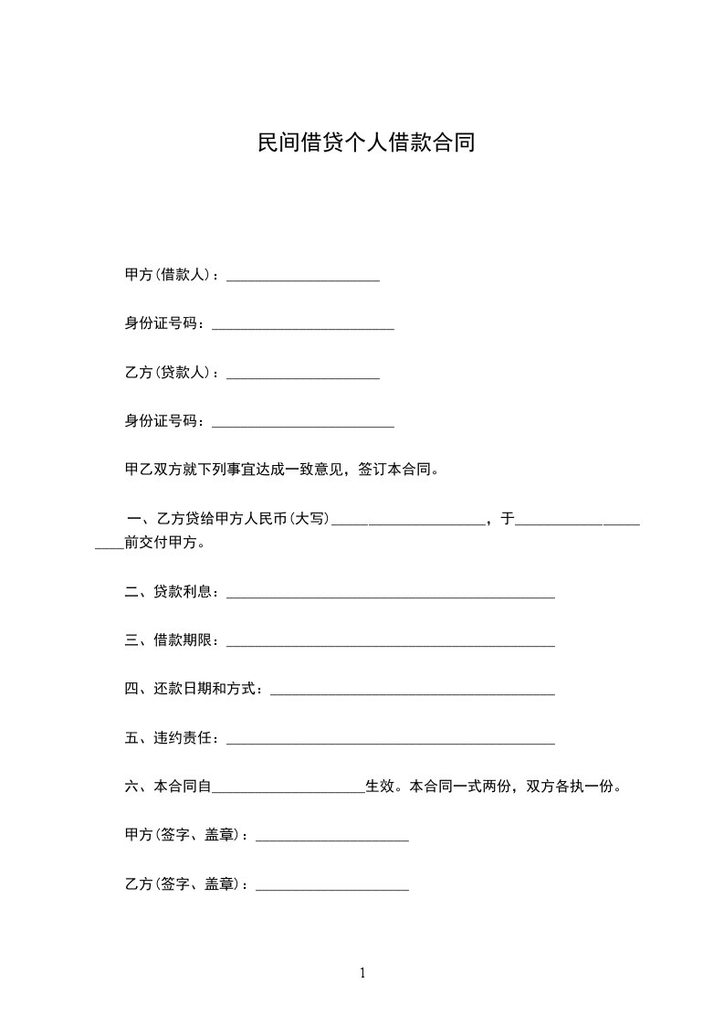 一、乙方贷给甲方人民币(大写)_____________________,于_____________________前交付甲方。