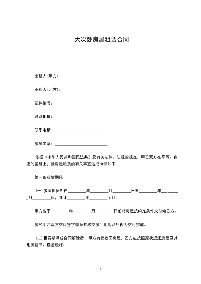 (一)房屋租赁期自_________年_________月_________日至_________年_________月_________日,共计_________年_________个月。