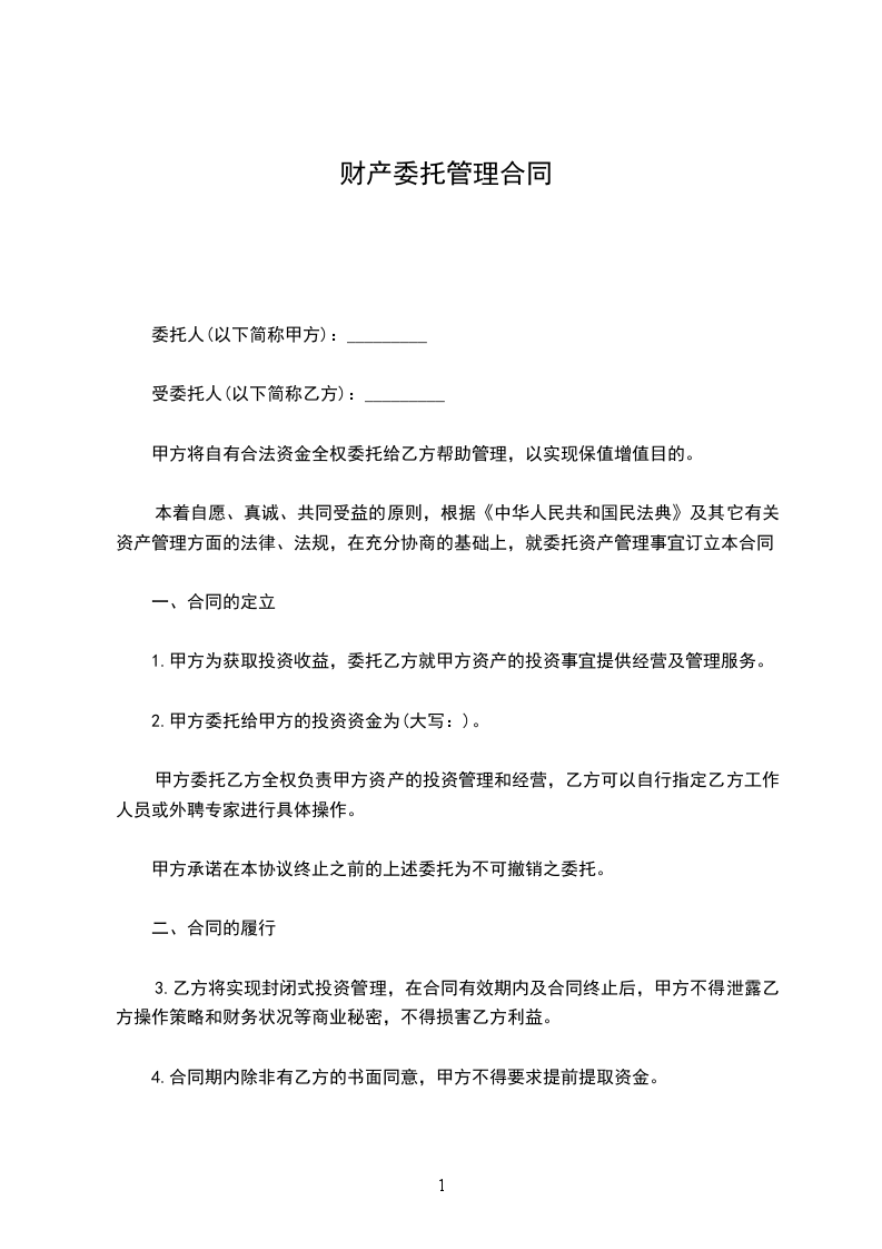 本着自愿、真诚、共同受益的原则,根据《中华人民共和国民法典》及其它有关资产管理方面的法律、法规,在充分协商的基础上,就委托资产管理事宜订立本合同。