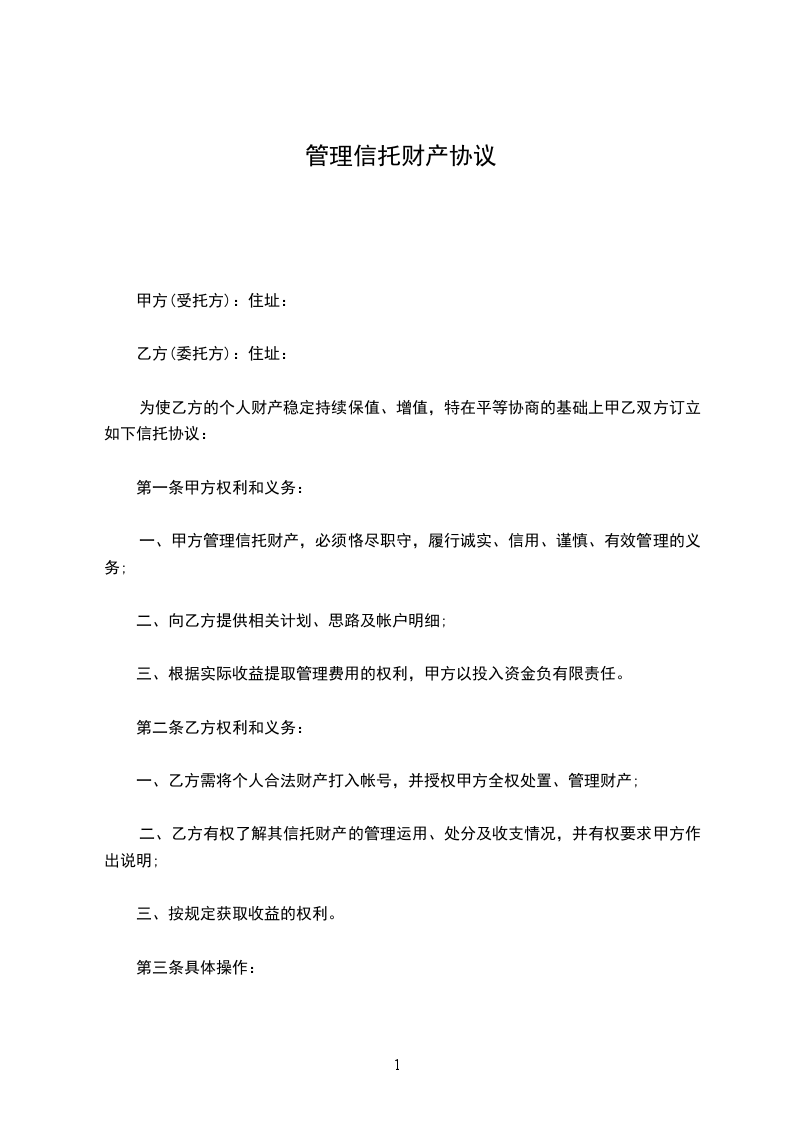 1.甲方为获取投资收益,委托乙方就甲方资产的投资事宜提供经营及管理服务。