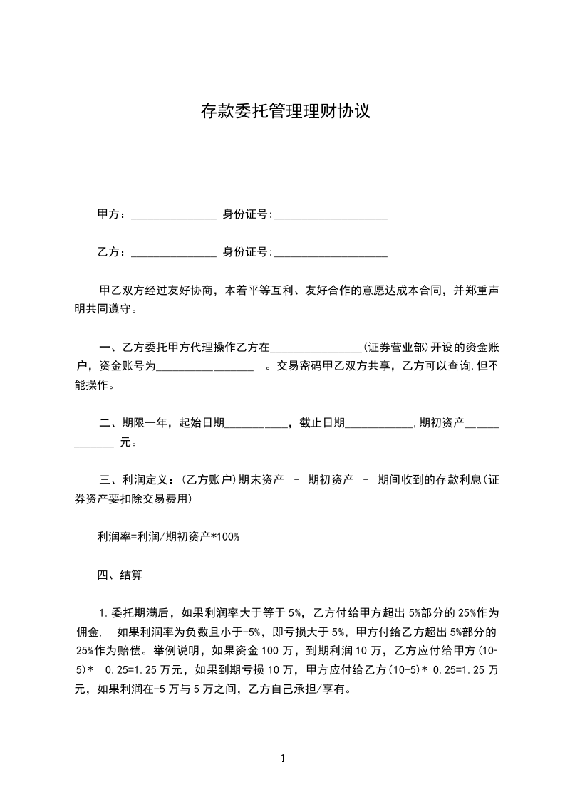 4.合同期内除非有乙方的书面同意,甲方不得要求提前提取资金。