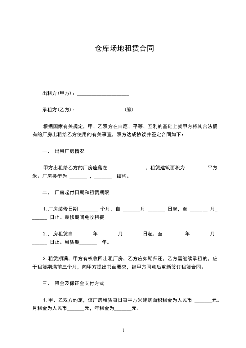 2.厂房租赁自 _______年_______ 月_______ 日起,至 _______ 年_______ 月_______ 日止。租赁期_______ 年。