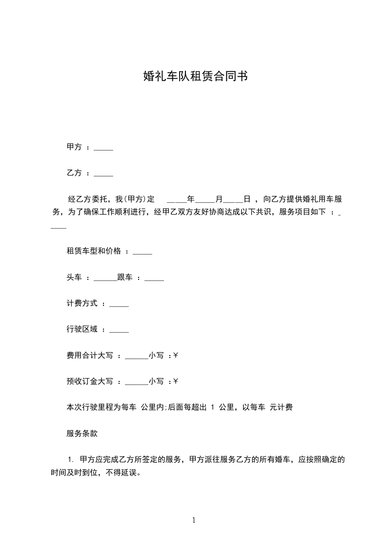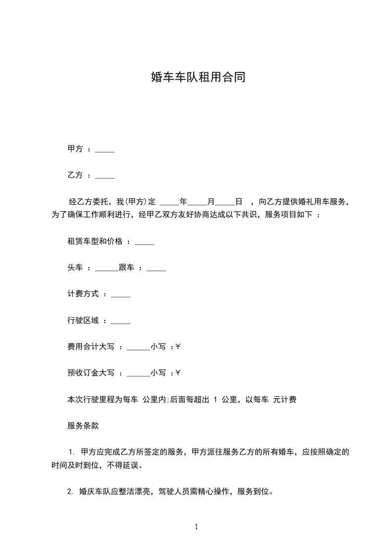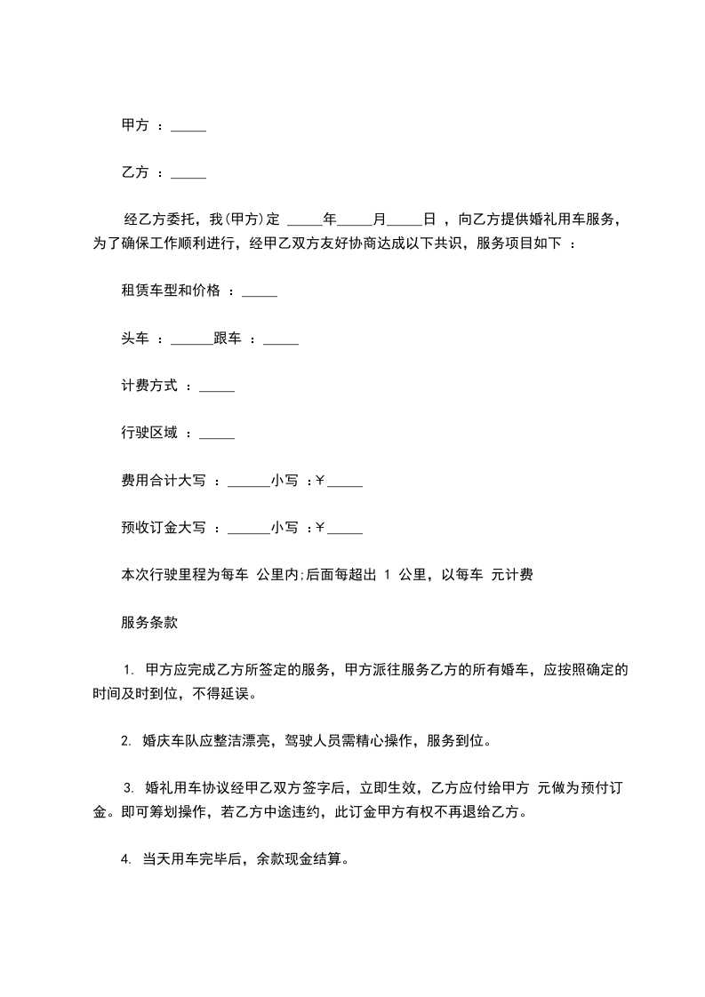 1、甲方提供每车喜烟、喜糖一份;除此之外乙方车队不得以各种名义向甲方索要“红包”等其他费用。
