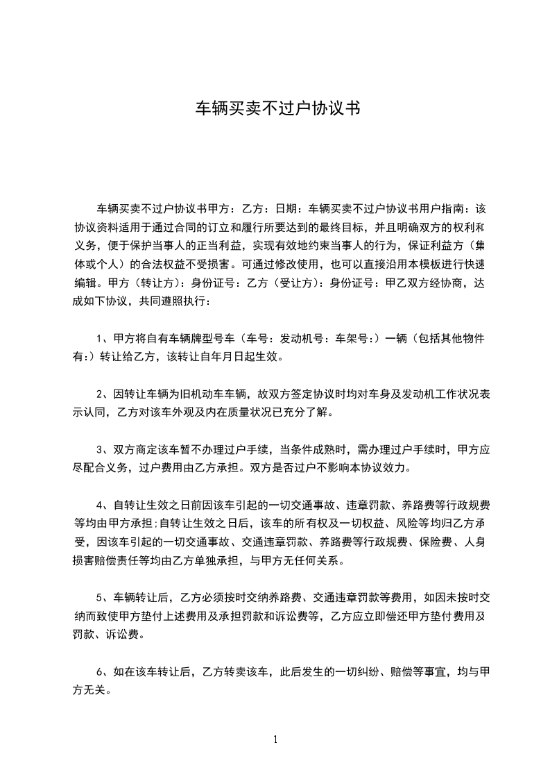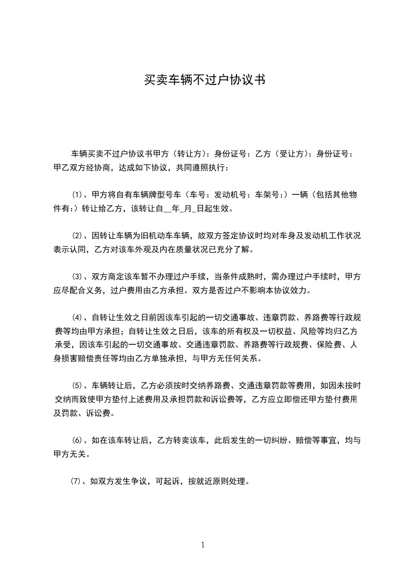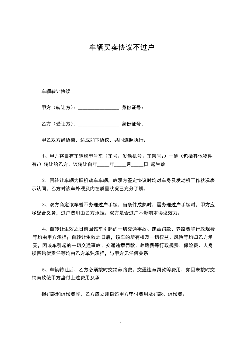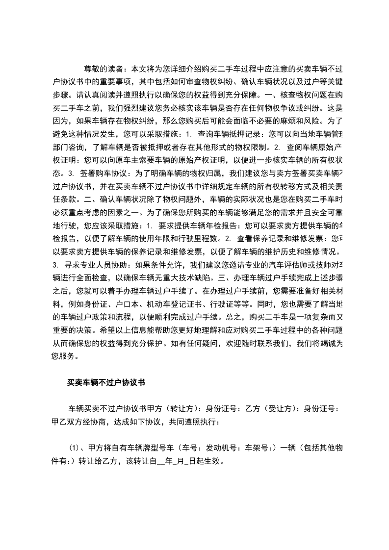 2、双方商定该车不办理过户手续,但该车所有权自本协议签订之日起完全归乙方。