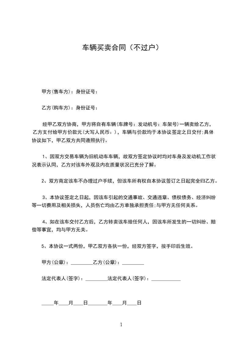 经甲乙双方协商,甲方将自有车辆(车牌号:发动机号:车架号)一辆卖给乙方,乙方支付给甲方价款元(大写人民币:),车辆与价款均于本协议签定之日交付;具体协议如下,甲乙双方共同遵照执行。