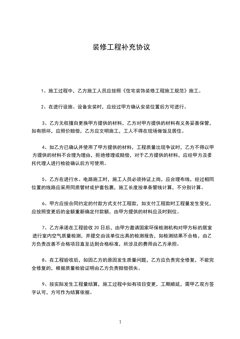 四、原协议中因乙方工作失误导致施工项目及材料(如橱柜、电线)遗漏预算的,由乙方自行负责(甲方概不负责补充费用)。