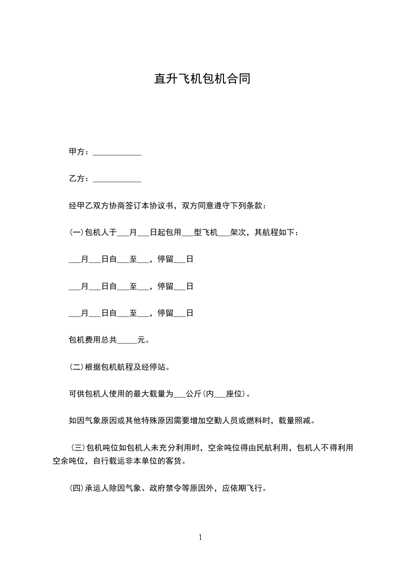 (一)包机人于___月___日起包用___型飞机___架次,其航程如下: