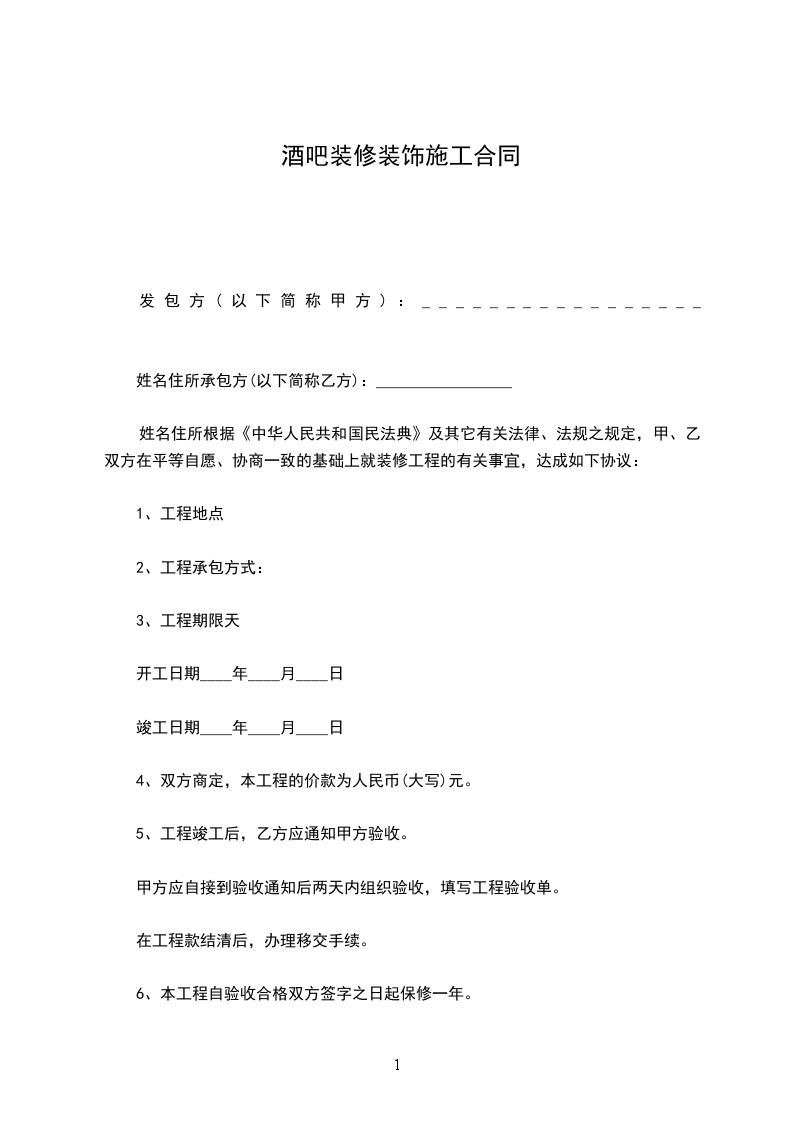 6、本工程自验收合格双方签字之日起保修一年。