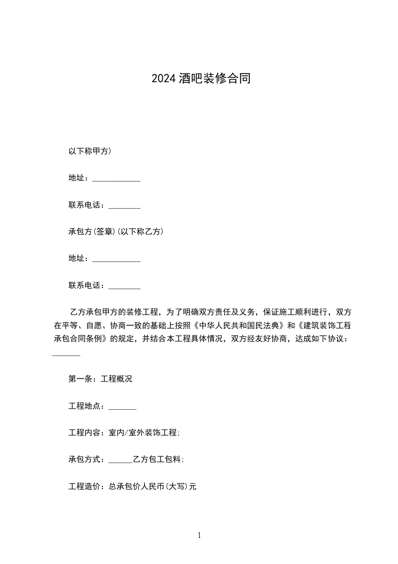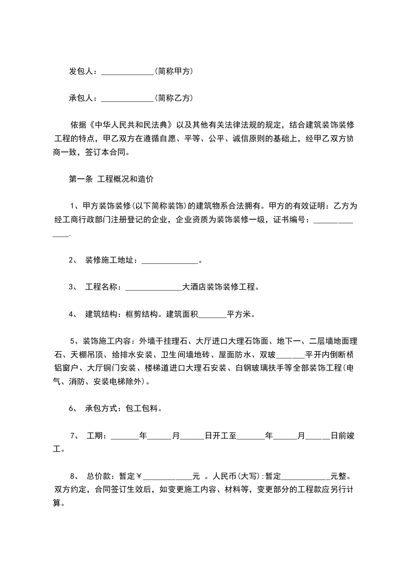 姓名住所根据《中华人民共和国民法典》及其它有关法律、法规之规定,甲、乙双方在平等自愿、协商一致的基础上就装修工程的有关事宜,达成如下协议: