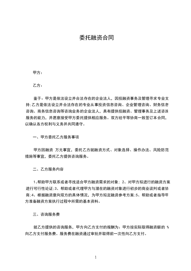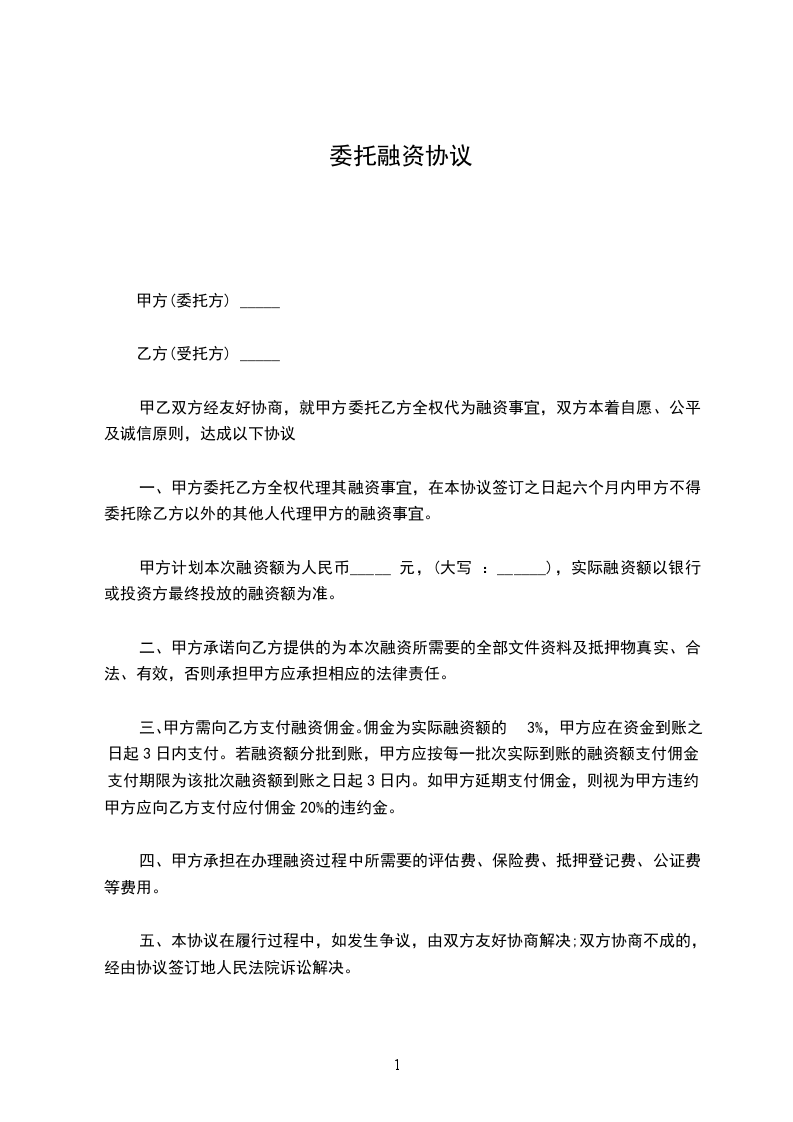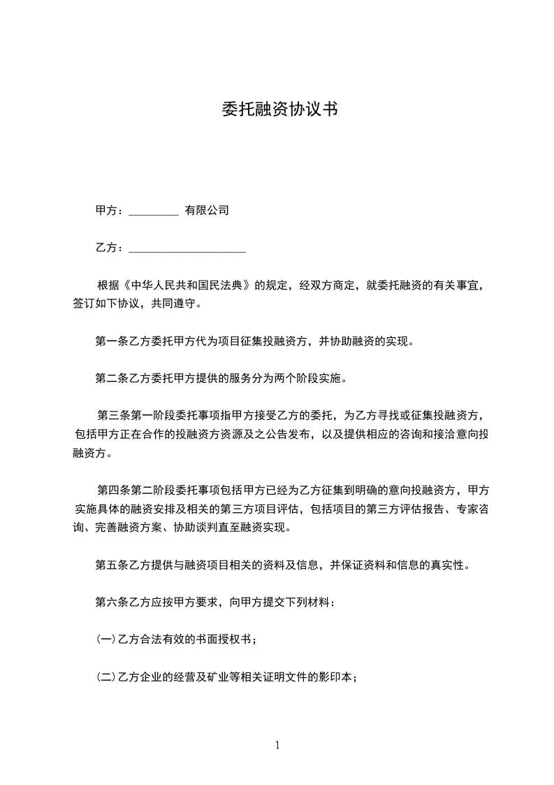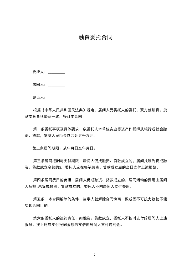 根据《中华人民共和国民法典》规定,居间人受委托人的委托,双方就融资、贷款委托事项协商一致,签订本合同: