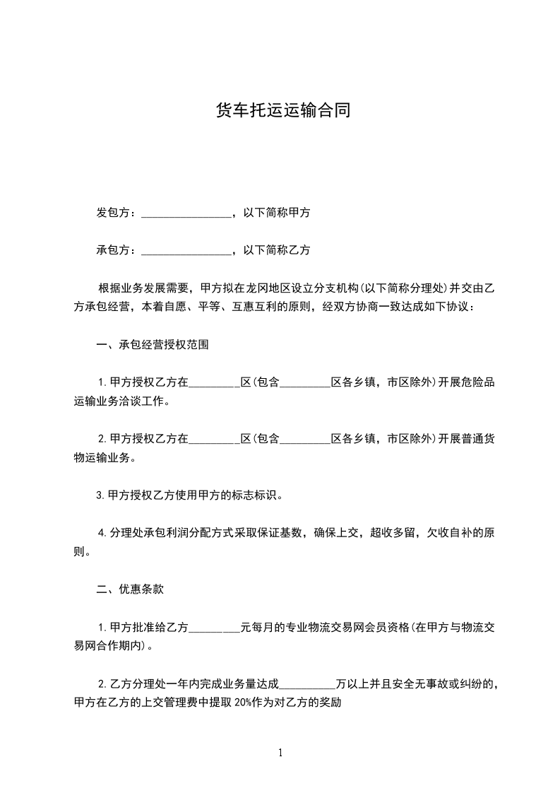 1.甲方授权乙方在_________区(包含_________区各乡镇,市区除外)开展危险品运输业务洽谈工作。
