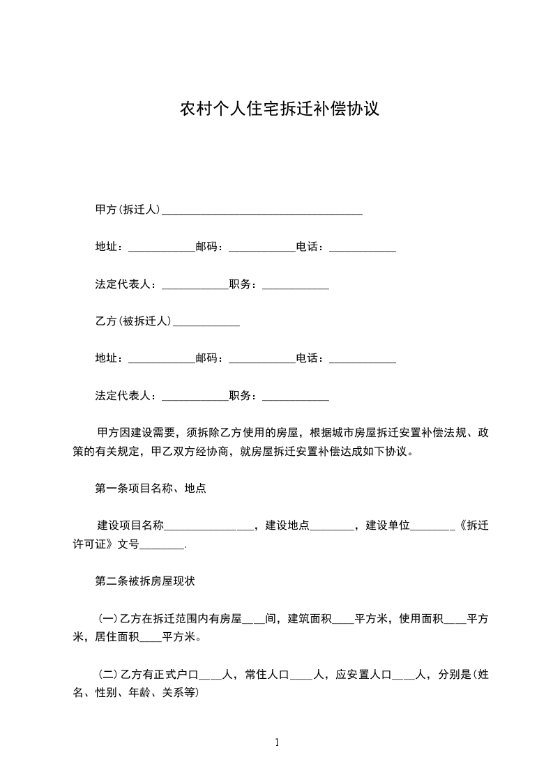 篇1 农村拆迁合理补偿协议