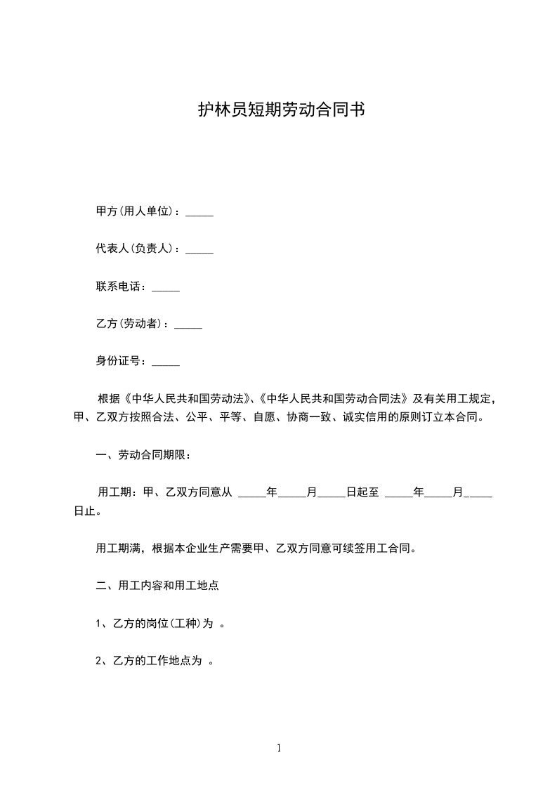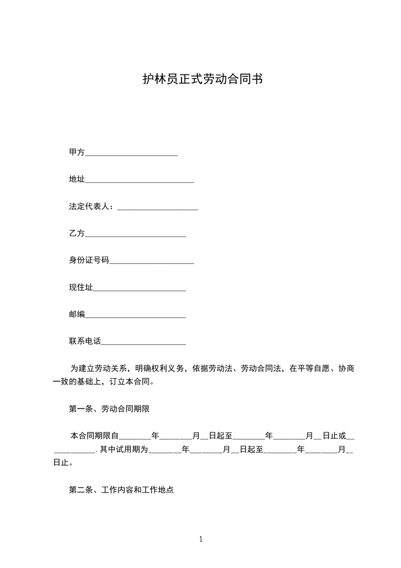 乙方(护林员):_________
