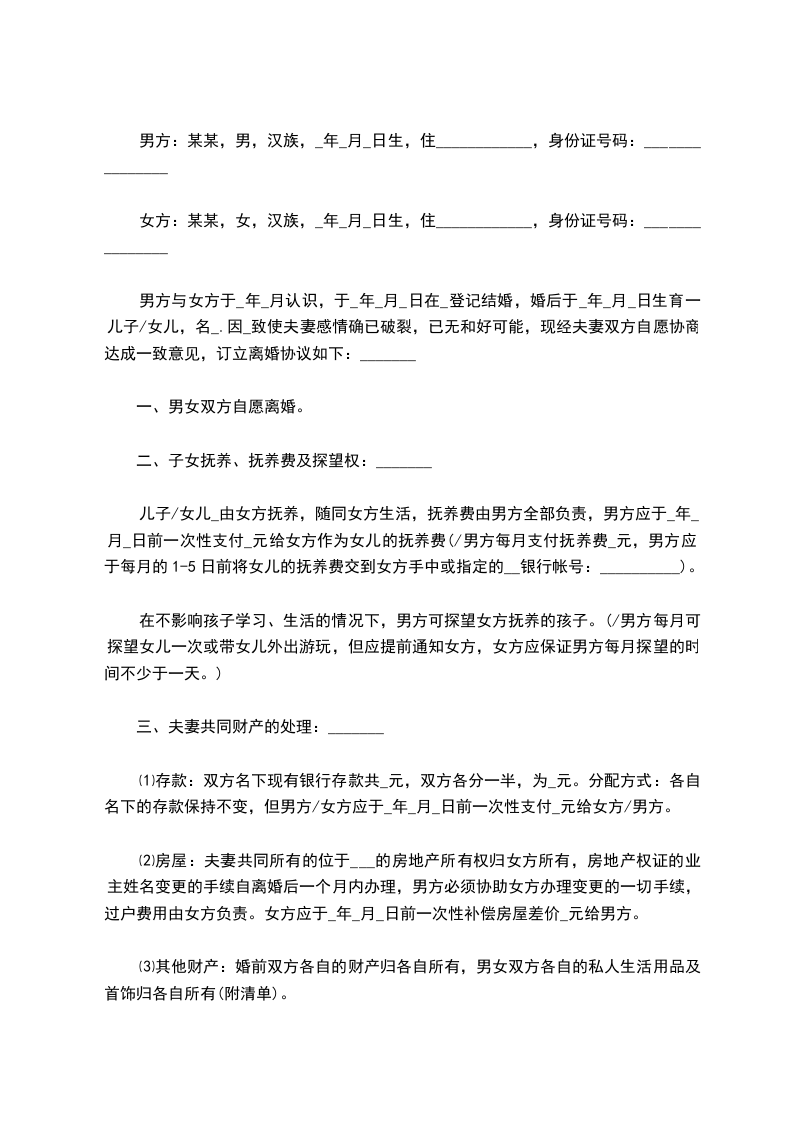 本协议一式三份,自婚姻登记机颁发《离婚证》之日起生效,男、女双方各执一份,婚姻登记机关存档一份。