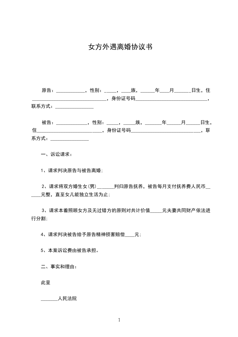 女方:__________,女,汉族,_____年_____月_____日生,住______________________,身份证号码:______________________