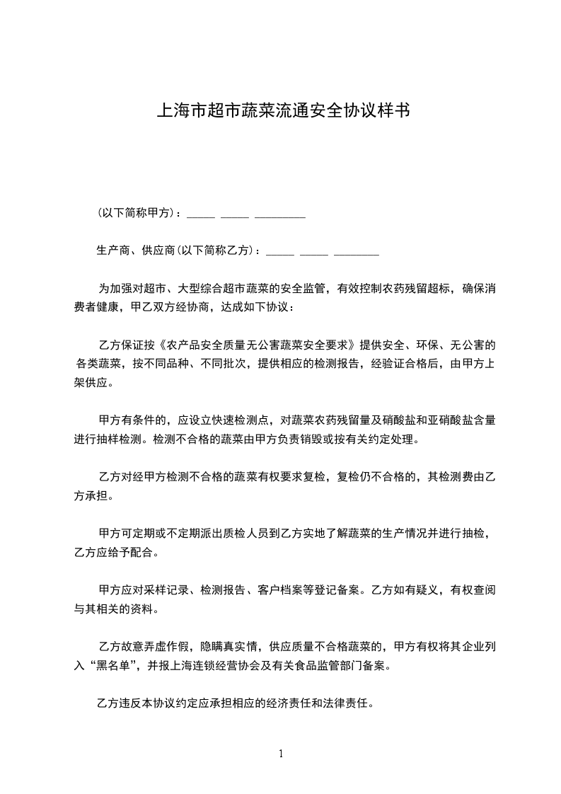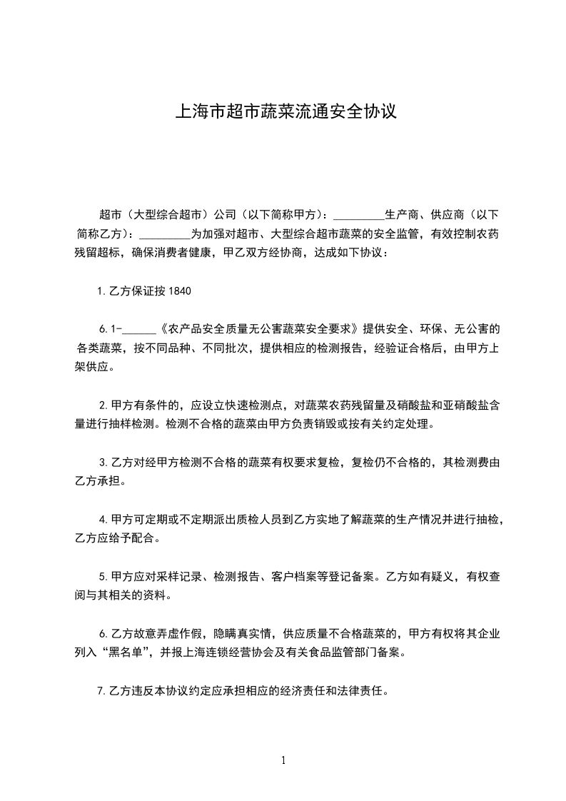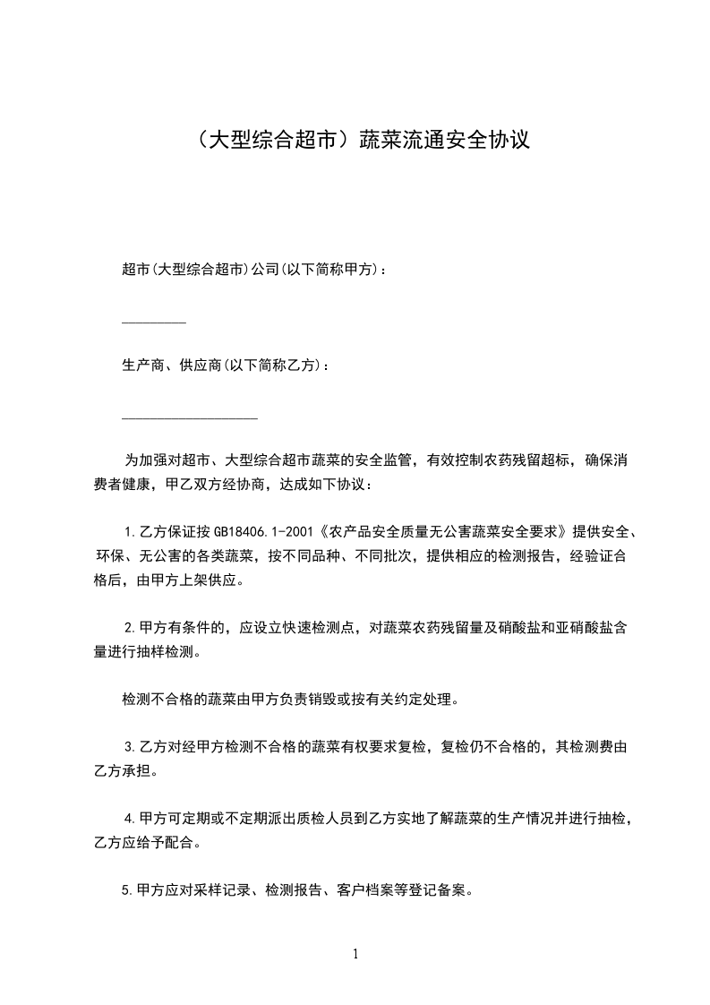 为加强对超市、大型综合超市蔬菜的安全监管,有效控制农药残留超标,确保消费者健康,甲乙双方经协商,达成如下协议: