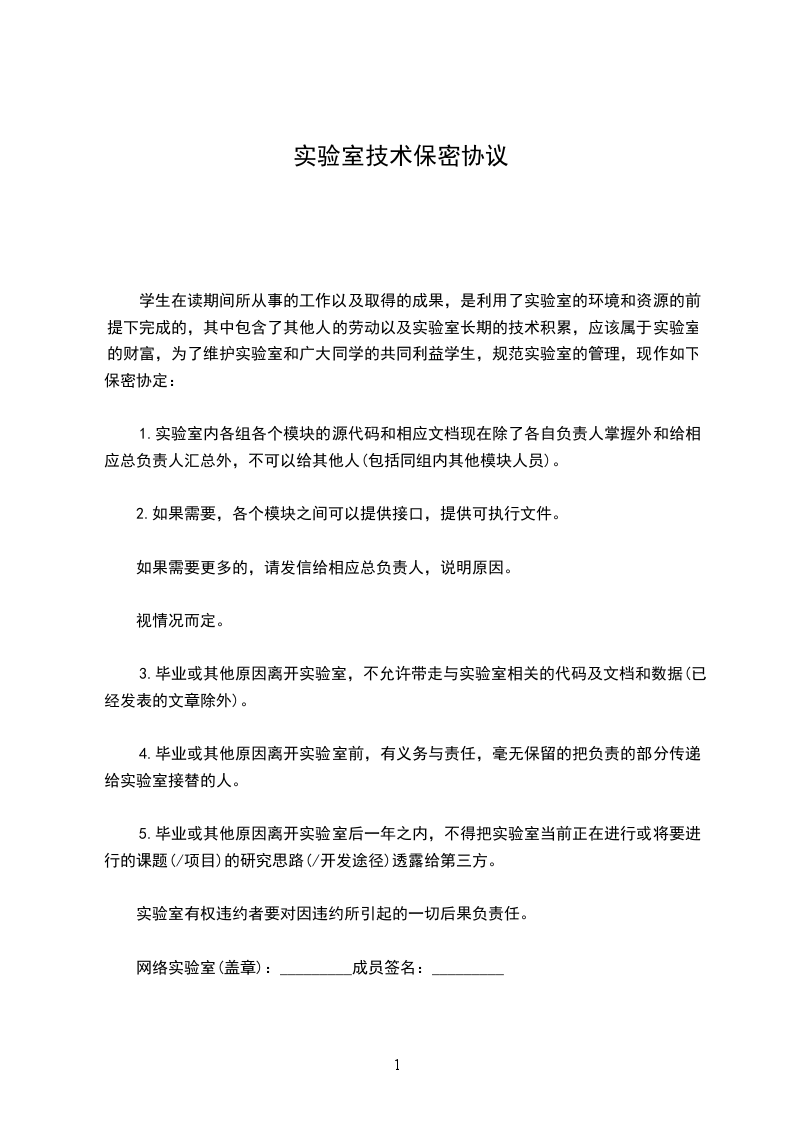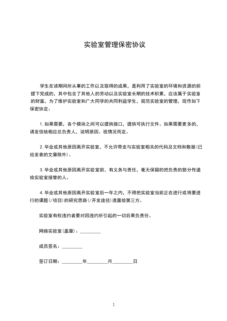 学生在读期间所从事的工作以及取得的成果,是利用了实验室的环境和资源的前提下完成的,其中包含了其他人的劳动以及实验室长期的技术积累,应该属于实验室的财富,为了维护实验室和广学的共同利益学生,规范实验室的管理,现作如下保密协定: