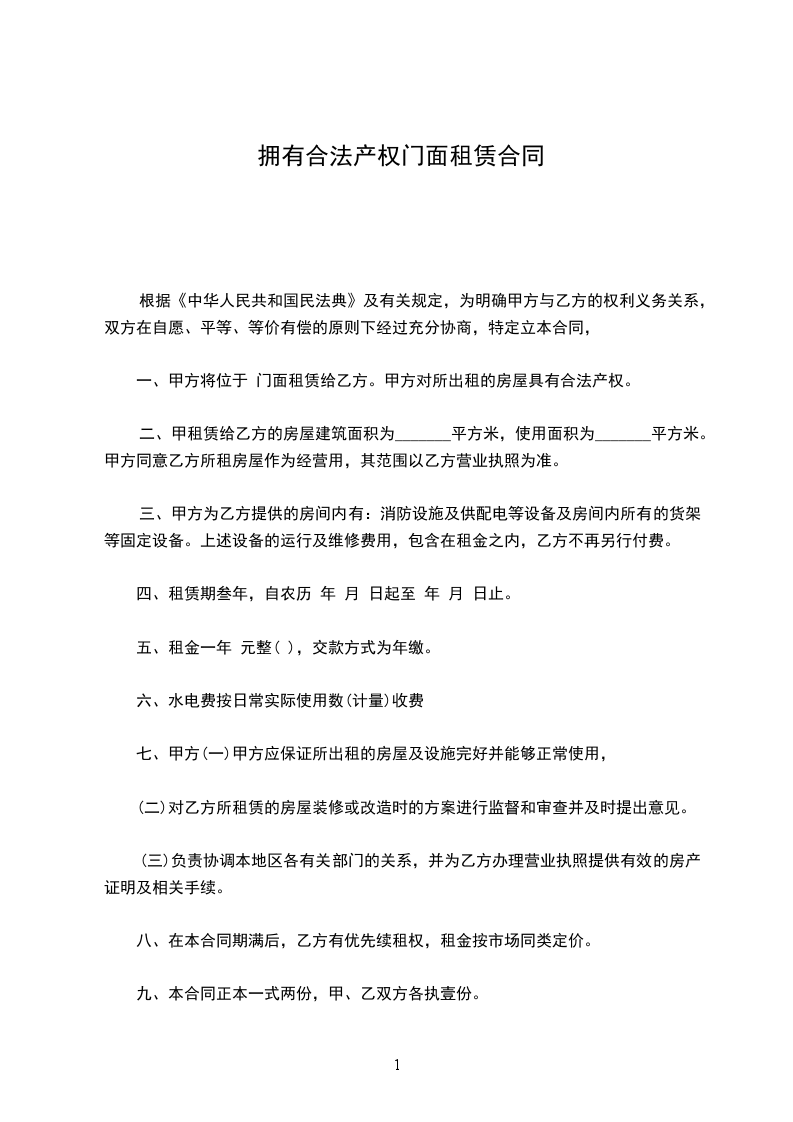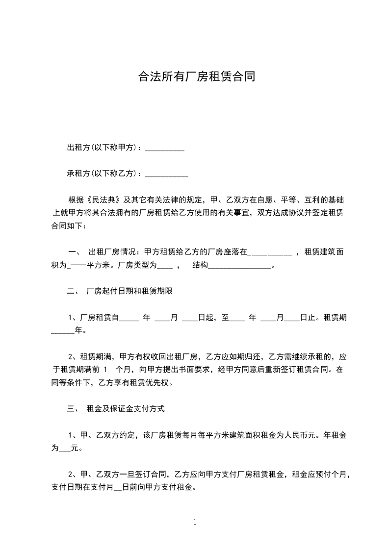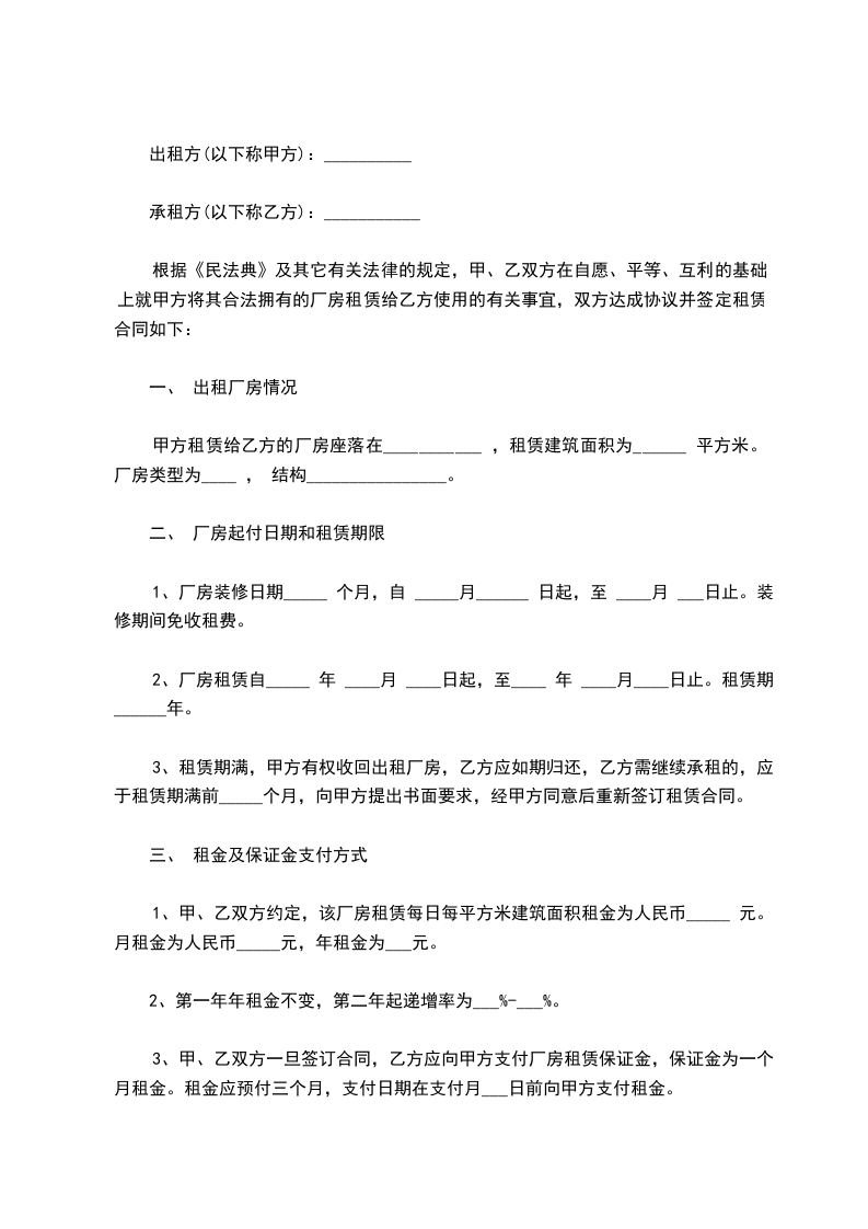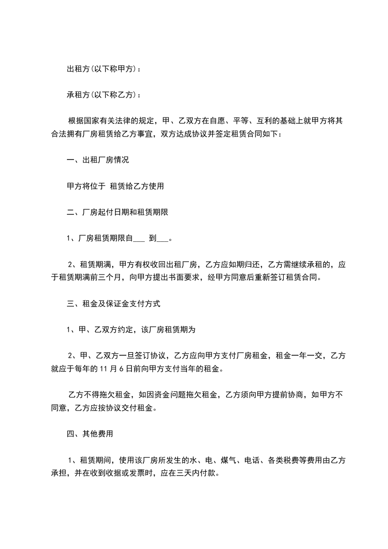 1、厂房租赁期限自___ 到___。