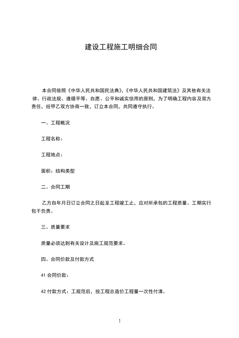 42付款方式:工规范后,按工程总造价工程量一次性付清。