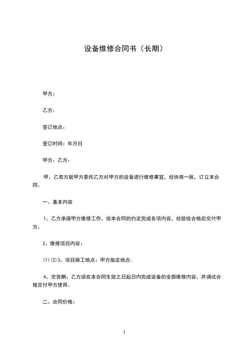 4、交货期:乙方须在本合同生效之日起_____日内完成设备的全部维修内容,并调试合格交付甲方使用。