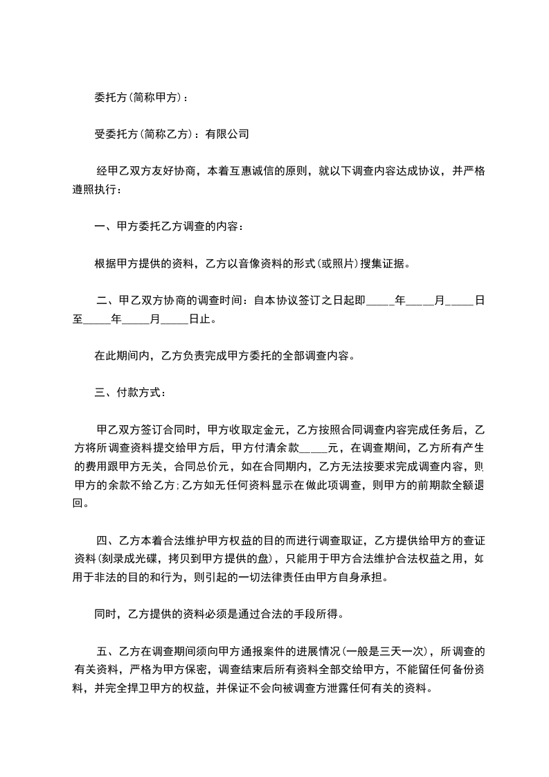 经甲乙双方友好协商,本着互惠诚信的原则,就以下调查内容达成协议,并严格遵照执行: