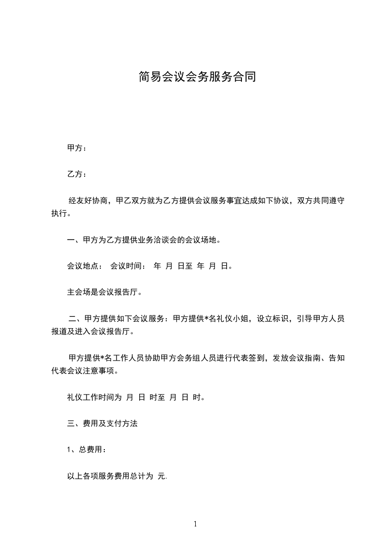 经友好协商,甲乙双方就为乙方提供会议服务事宜达成如下协议,双方共同遵守执行。