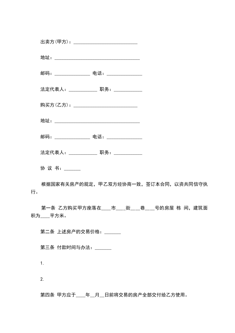 一、卖方有房产 个单元座落在深圳市 第 座 楼 单元。合计面积 平方米。现自愿将该房产卖给买方。售价为币 百 拾 万千 百 拾 元整。(原楼价为 币 百 拾 万 千 百拾 元整)。