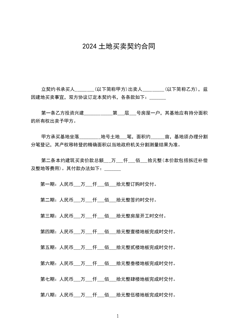 1、 厂房价格每平方米人民币_____元(大写),总价(含人民币土地价格)人民币_____元(大写)。()