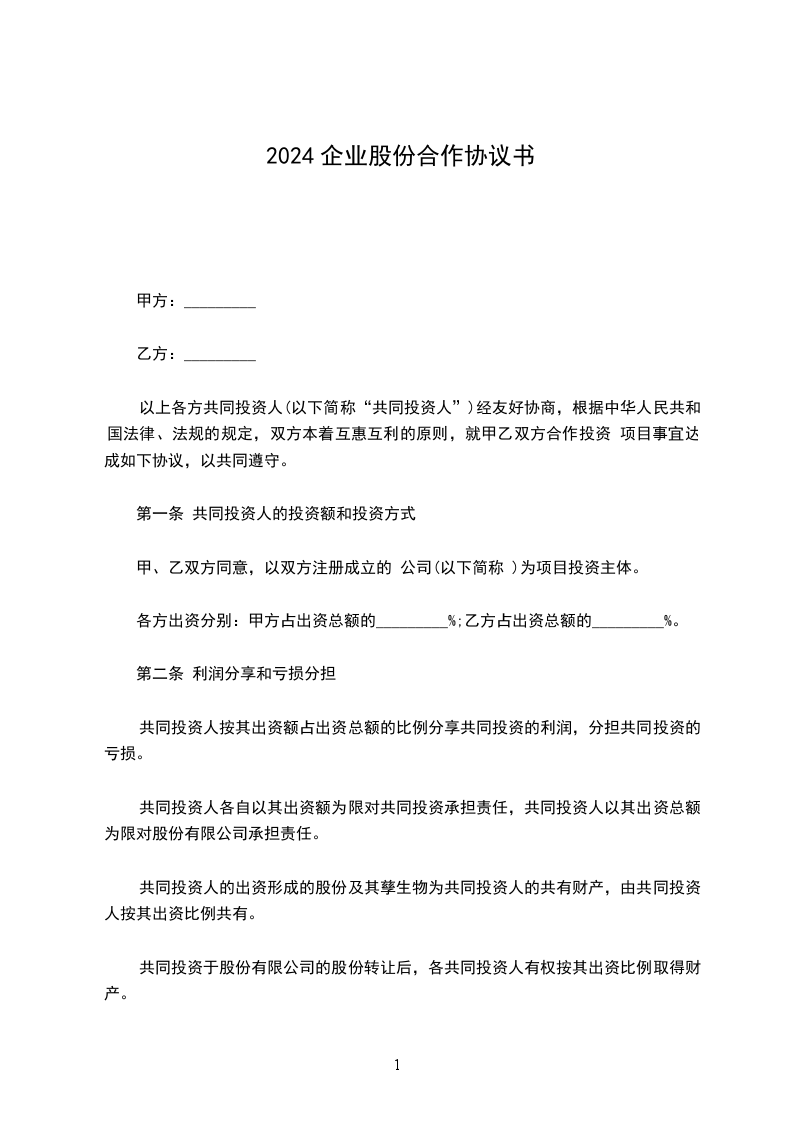 2.本协议经全体共同投资人签字盖章后即生效。本协议一式_______份,共同投资人各执一份。