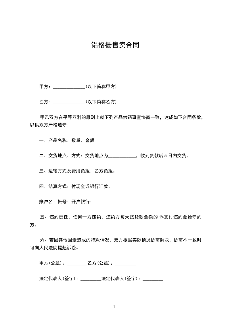 篇1 铝型材格栅安装合同